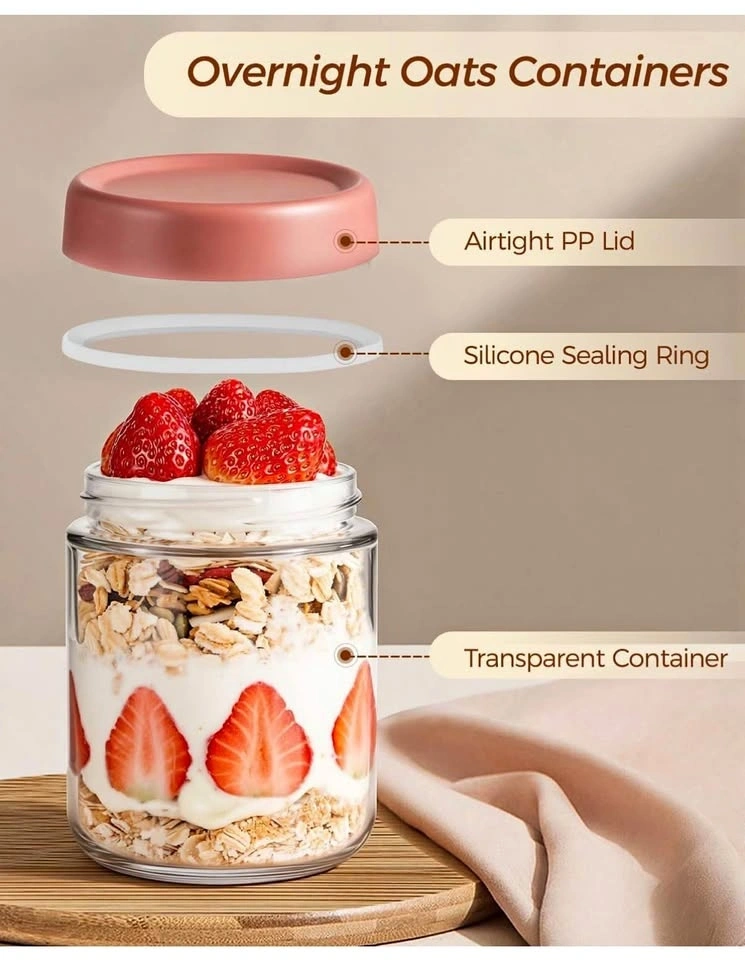 Overnight Oats Glass Jars with Lids - 4 Jars
