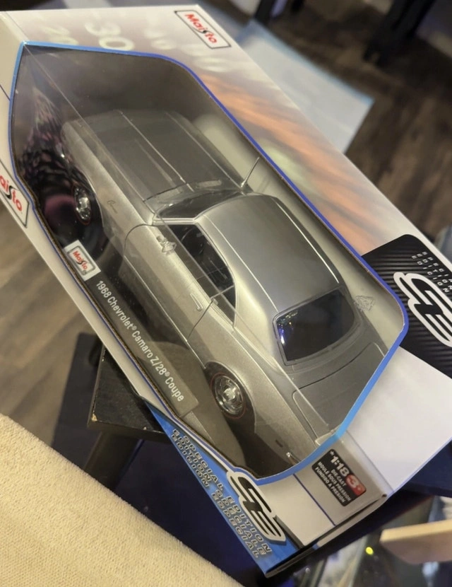 This is a Maisto 1:18 die-cast collectible of a 1968 Chevrolet Camaro Z/28 Coupe Special Edition, still brand new in its original packaging. It's a perfect gift for car enthusiasts or a great addition to any die-cast collection. Brand: Maisto, Scale: 1:18, Model: 1968 Chevrolet Camaro Z/28 Coupe, Special Edition, Condition: New in box. If the ad's still up, this sleek Camaro is still waiting for a new home!