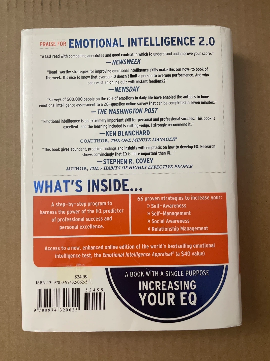 This book teaches 66 proven strategies to increase emotional intelligence, focusing on self-awareness, self-management, social awareness, and relationship management. It includes access to a new, enhanced online edition of the world's most popular emotional intelligence test. It's written by Travis Bradberry & Jean Greaves.