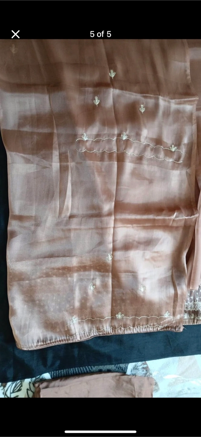 A beautiful brown salwar kameez suit, perfect for any occasion! The material is lightweight and comfortable, and the intricate detailing adds a touch of elegance. It's in great condition and ready for a new home