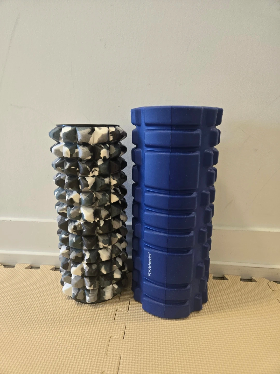 Selling a blue PuR AthletiCS foam roller and a grey camo textured foam roller. Both are standard size. They're great for muscle recovery and deep tissue massage. Two for $10 pick up only at 39 Roehampton