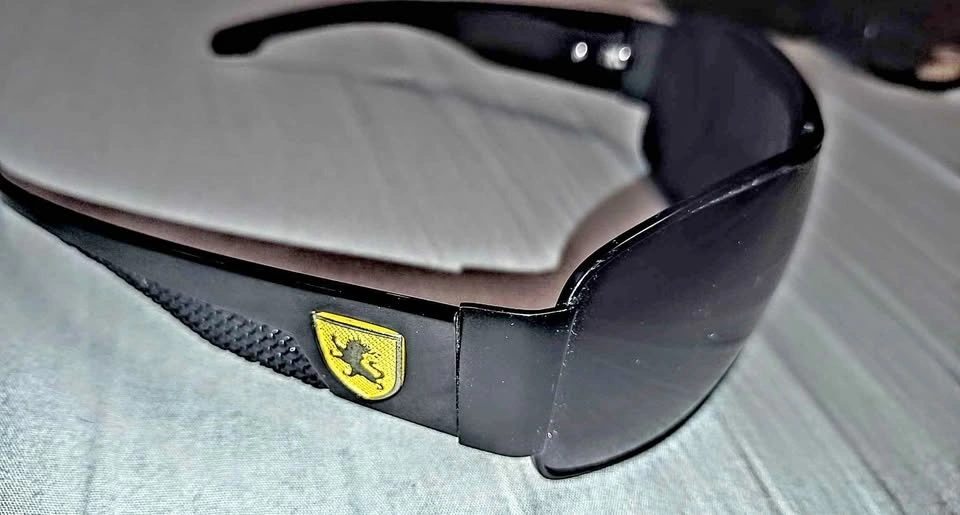 These KHAN shield sunglasses feature a lion in shield design on the textured arms. Good for construction workers or men out in the sun all day!