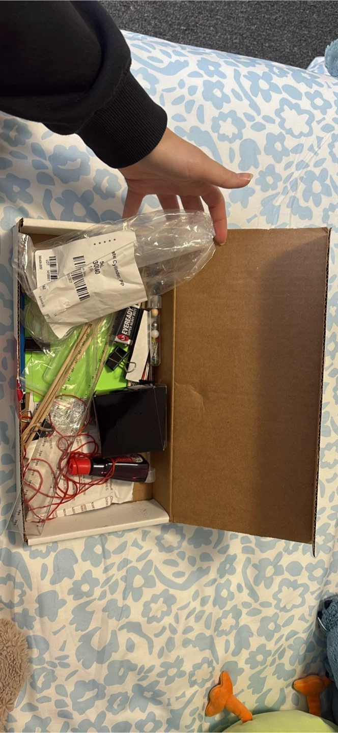 UG Physics lab kit containing various science experiment components. Includes wires, resistors, and other electrical components for building circuits.