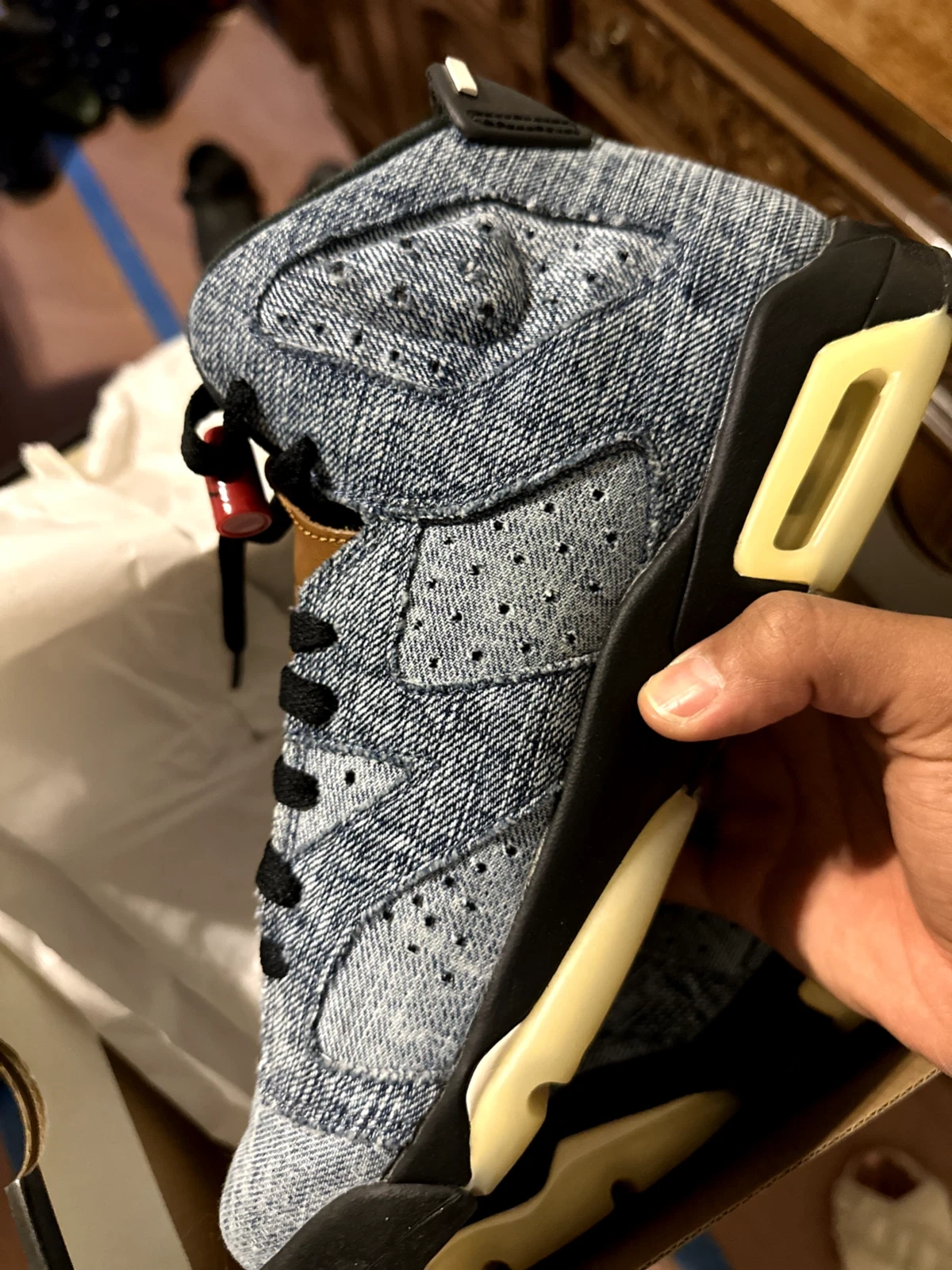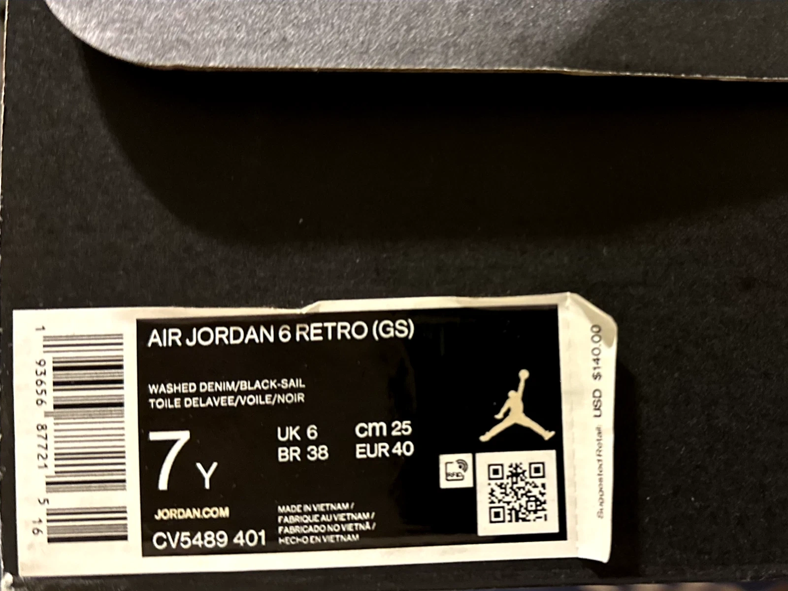 Pre-owned - Good. Country of Origin: Vietnam, Closure: Lace Up, US Shoe Size: 7Y, Occasion: Activewear, Casual, Silhouette: Jordan 6 Retro Washed Denim 2019, Year Manufactured: 2019, Department: Teens, Release Year: 2019, Style: Sneaker, Outsole Material: Rubber, Features: Comfort, Cushioned, Season: Fall, Spring, Summer, Winter, UK Shoe Size: 6, Shoe Shaft Style: High Top, Style Code: CV5489401, Pattern: Solid, Character: Michael, EU Shoe Size: 40, Color: Blue, Lining Material: Synthetic, Brand: Nike, Type: Athletic, Customized: No, Model: Air Jordan Retro, Theme: 90s, Retro, Shoe Width: Standard, Upper Material: Denim, Insole Material: Foam, Performance/Activity: Basketball, School, Walking, Product Line: Air Jordan.