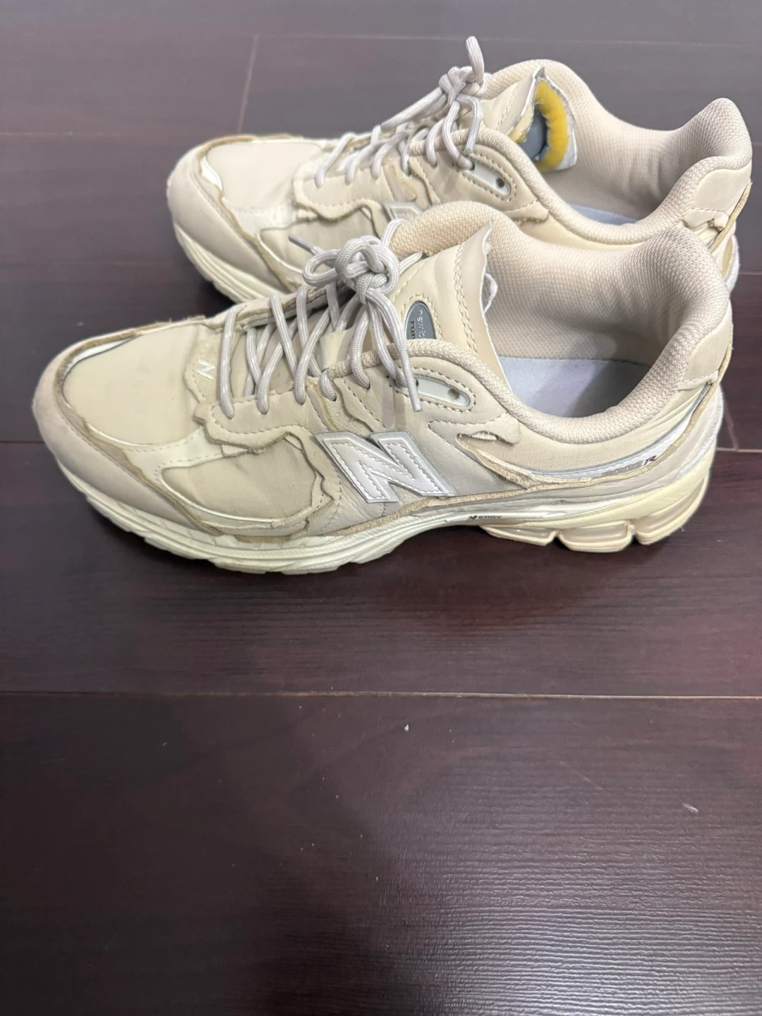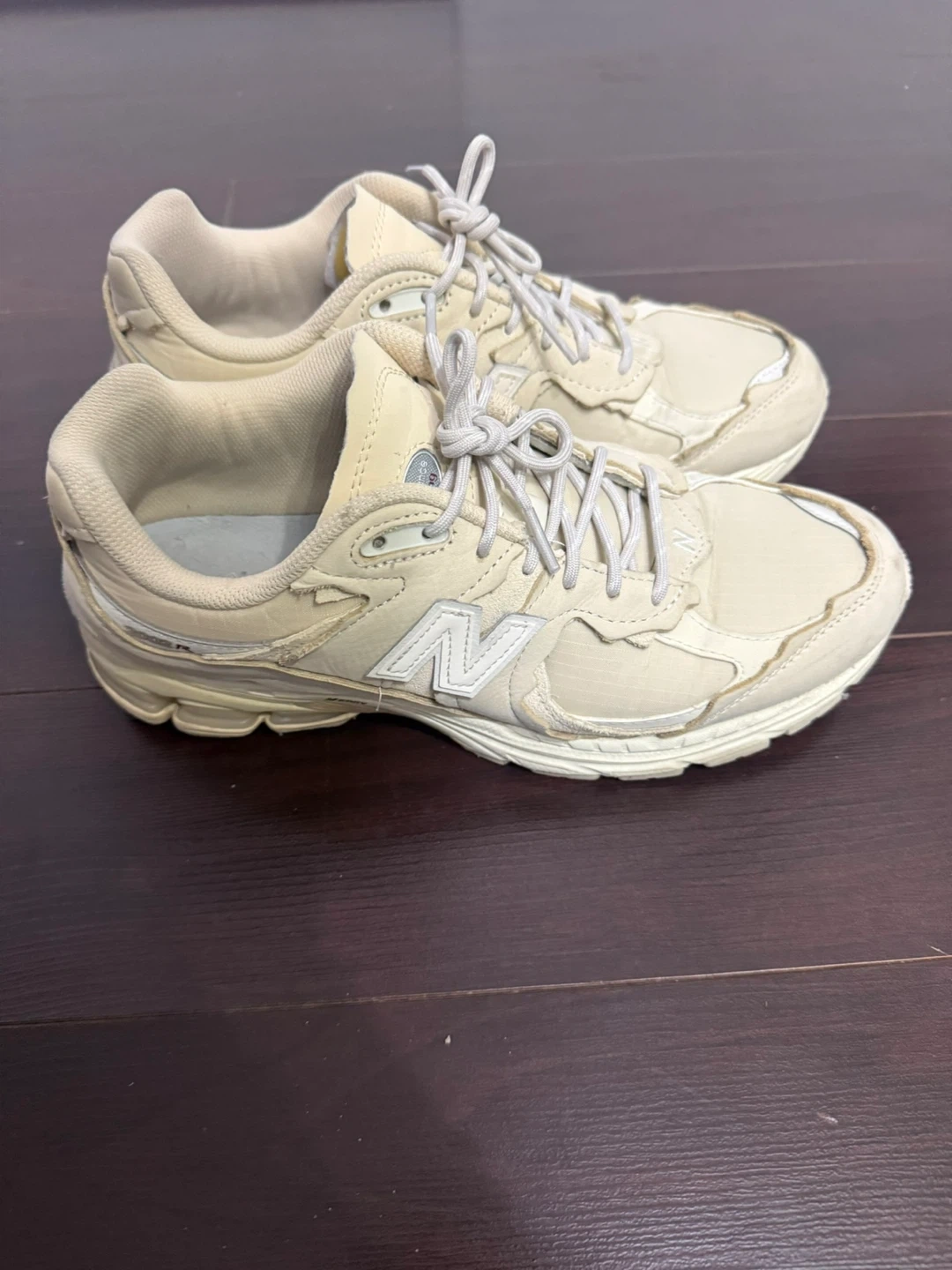 These New Balance 2002R sneakers are in a light beige colour. They feature the signature N logo on the sides. Good for everyday wear or casual outfits!