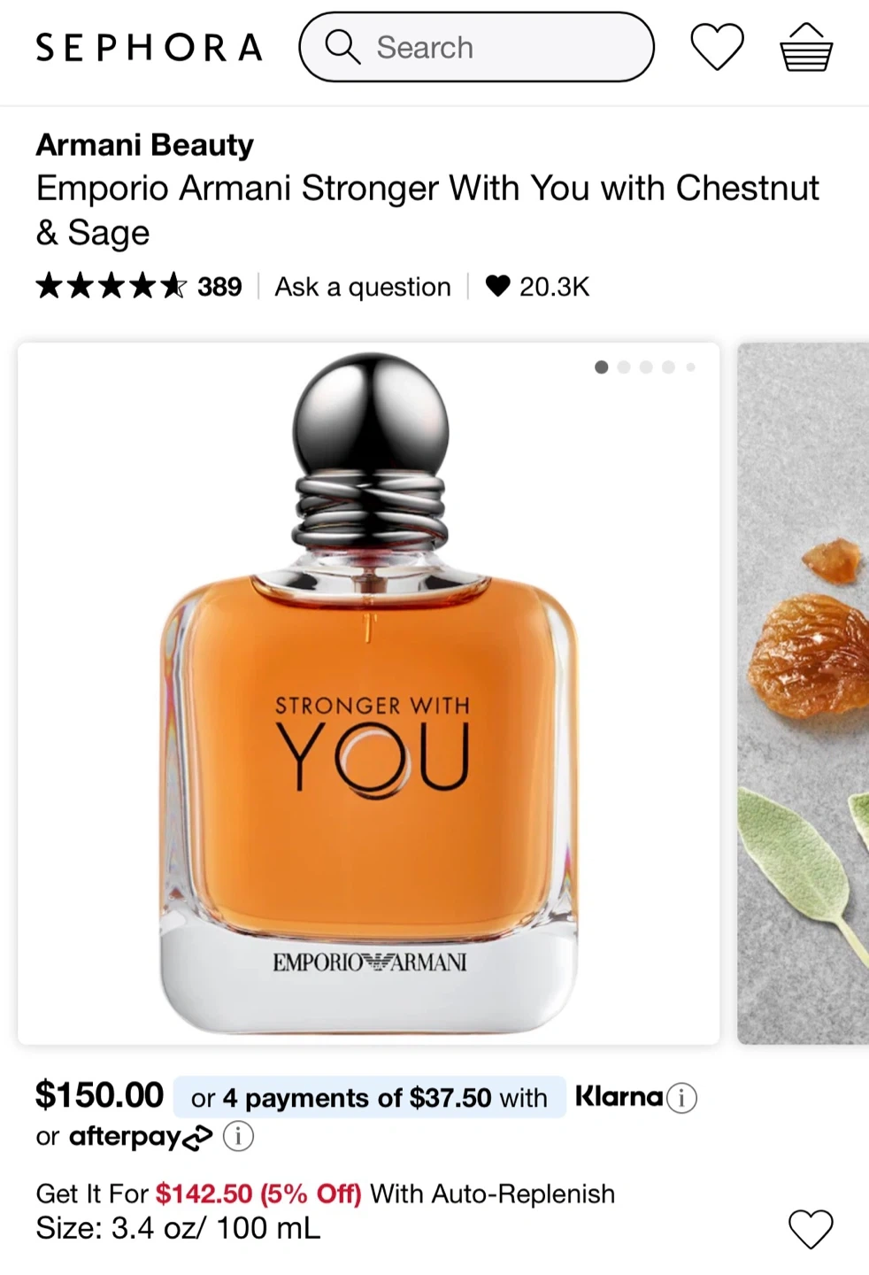 Emporio Armani Stronger With You Eau de Toilette for Men. Vapoisateur Spray. 3.4 FL OZ / 100 mL.