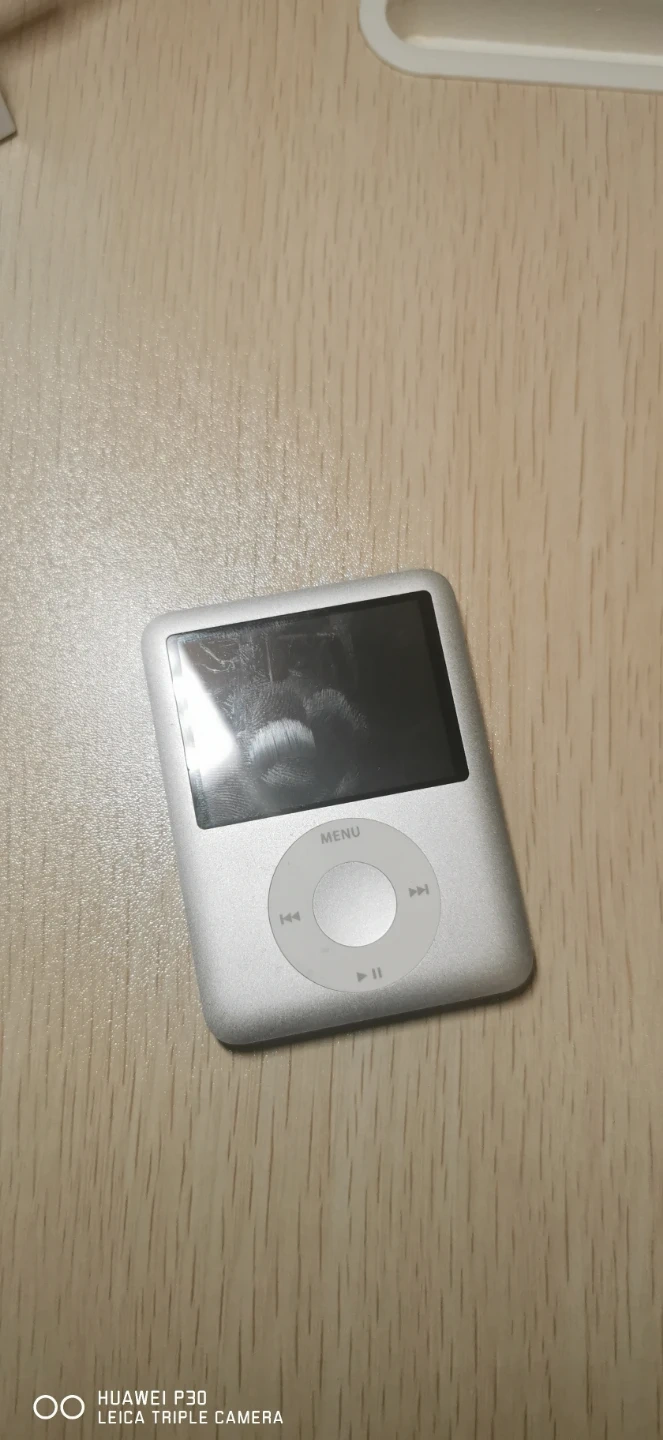 This is a silver Apple iPod Nano with 4GB of storage. It's a compact digital music player. It's great for carrying your favourite tunes on the go! Needs new battery.