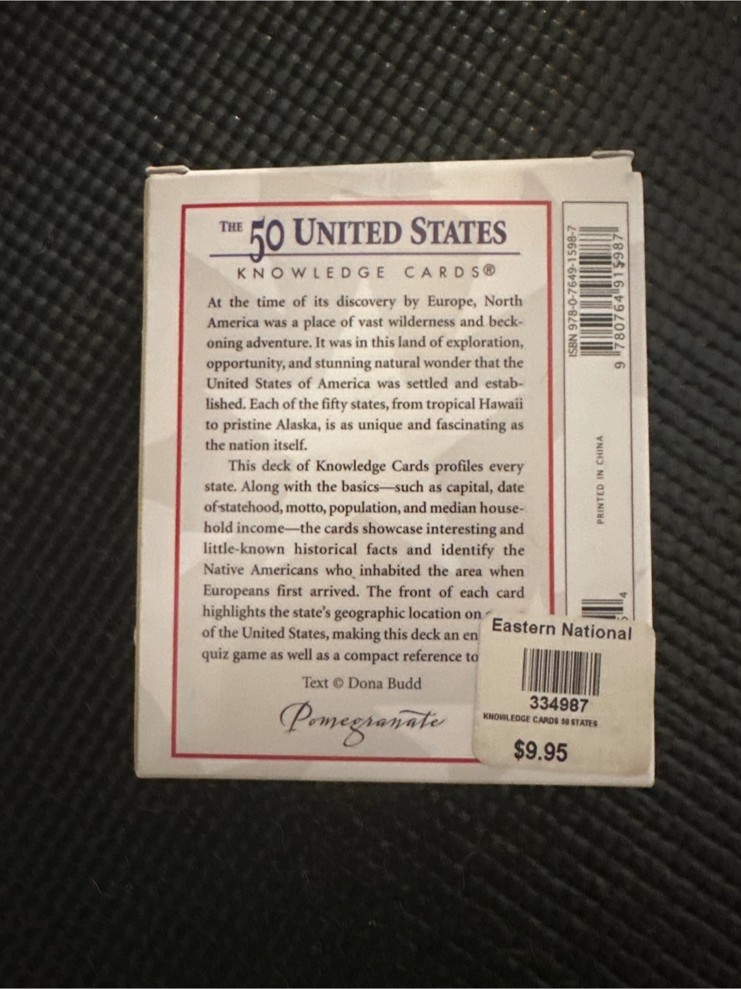 This deck of Knowledge Cards profiles every state. Each of the fifty states, from tropical Hawaii to pristine Alaska, is as unique and fascinating as the nation itself. Each card highlights the state's geographic location on a map of the United States.