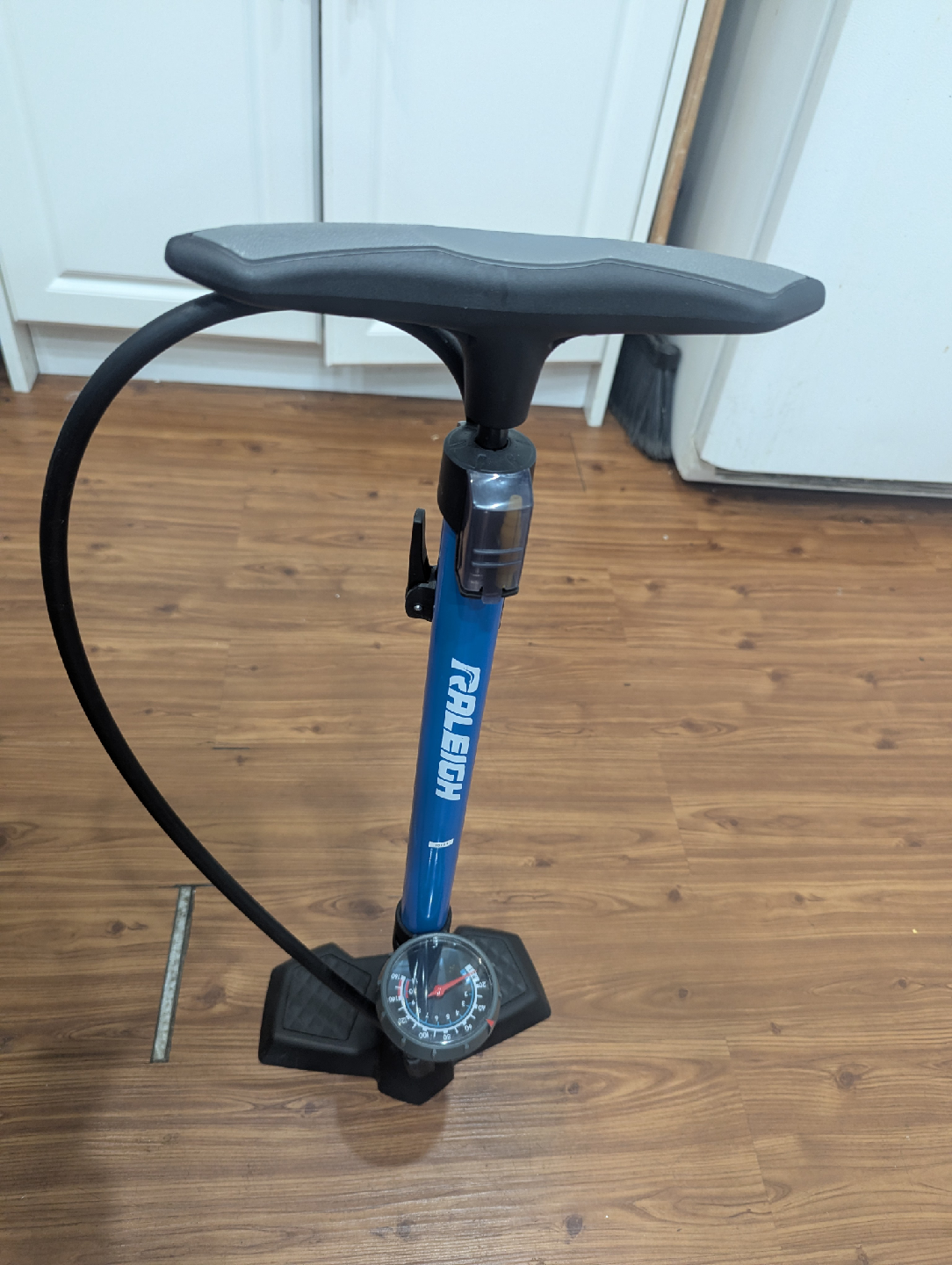 Selling a blue Raleigh bike pump! It's in great shape and ready to help you keep your tires properly inflated. It features a built-in pressure gauge so you can easily see how much air you're adding. Perfect for any cyclist!