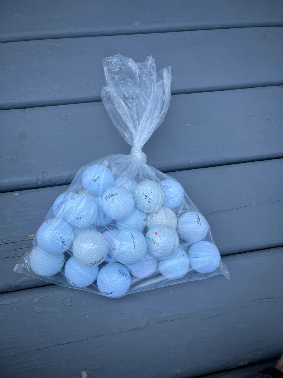 Selling a bag of Titleist golf balls. They are all the same brand of balls in the bag and there are 23 balls total.