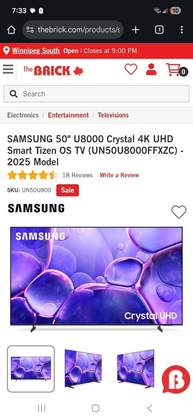 Samsung 50" Crystal UHD 4K Smart TV - U8000F