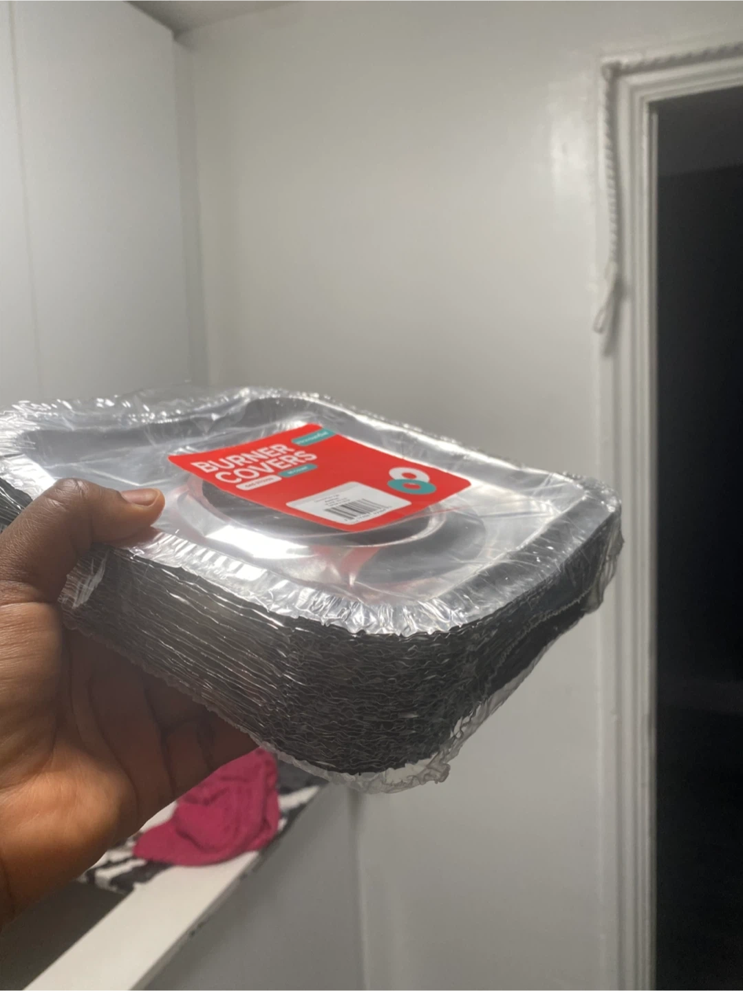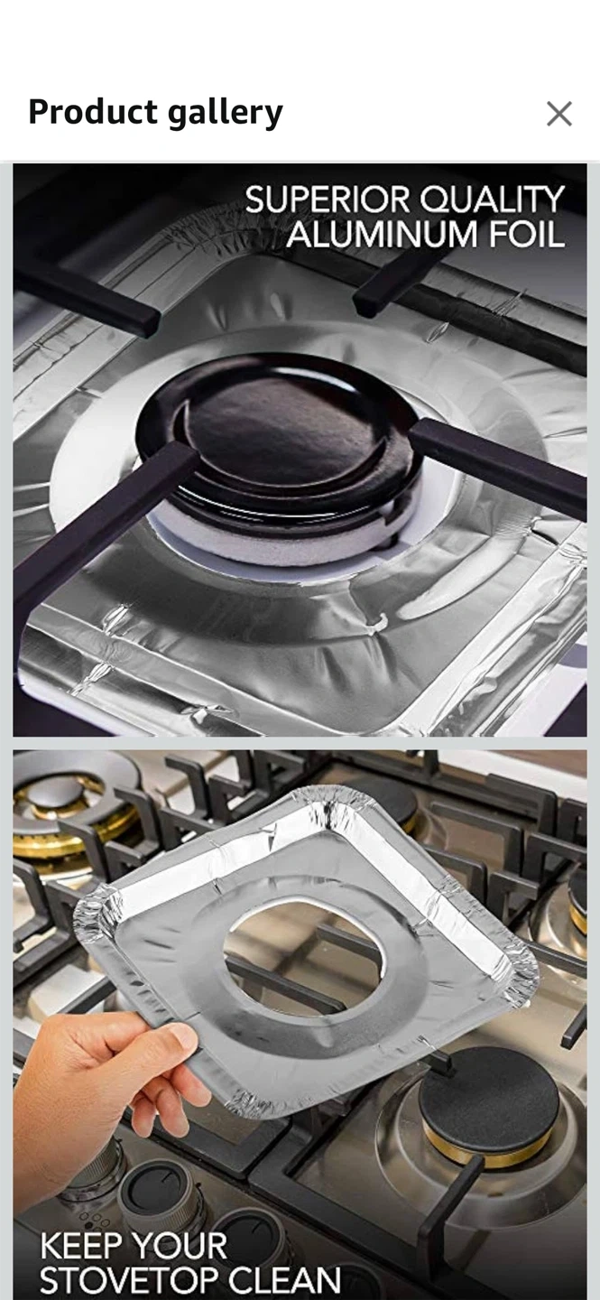 A pack of square 48 burner covers for your stove. These are made of foil for easy cleanup. They're great for keeping your stovetop clean between uses!