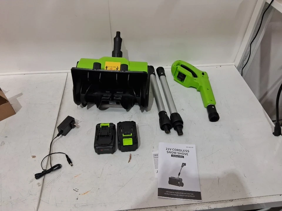 Clear your walkways effortlessly with this AOKUN 21V cordless snow shovel, featuring a 12.5-inch clearing width and powered by two 4.0Ah batteries for extended use. This item is like new, and comes in its original packaging, ready to tackle winter's snowy challenges.