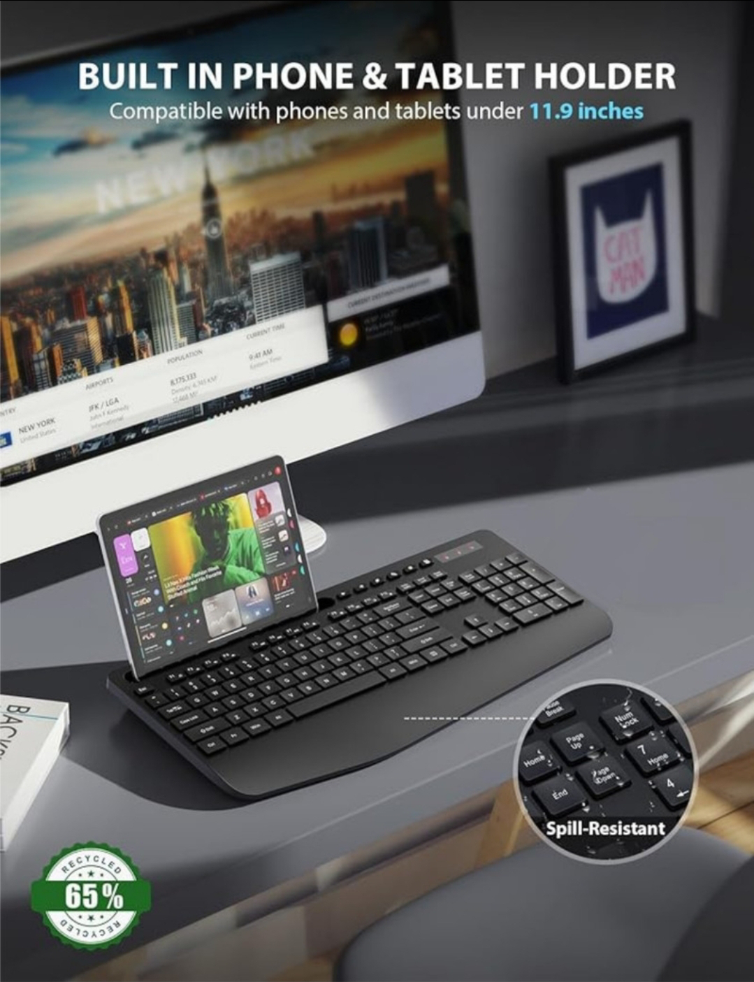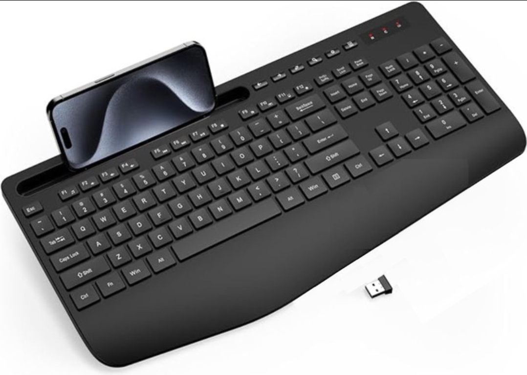 Black Wireless Keyboard with Phone/Tablet Holder