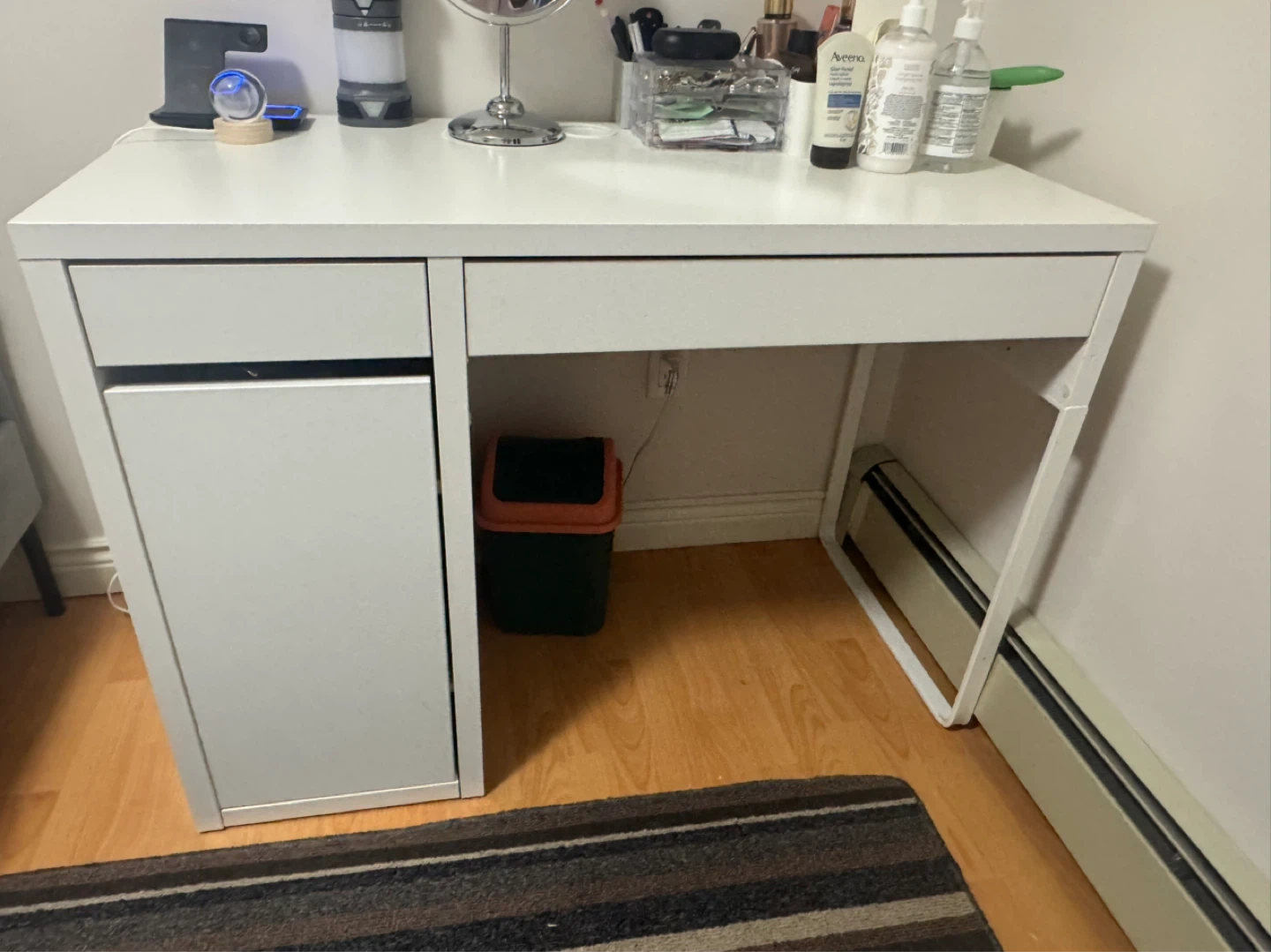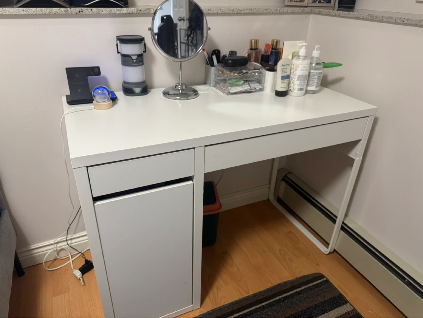 1 / 31 / 3Buy & SellIkea Micke DeskIkea Micke Desk$59A clean white desk featuring a drawer and a cabinet for storage. It's perfect for a vanity or a small workspace. White laminate finish.ConditionLike newWHERE TO MEET26th aveView MapSELLERverifiedAlyssaRenfrew Collingwood640 reviews3 chats·4 favorites·33 viewsSEND CHAT TO SELLERHi Alyssa! I’m interested in your listing.Hi Alyssa! I’m interested in your listing.Get the Karrot app to chatSign In to chat