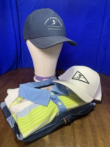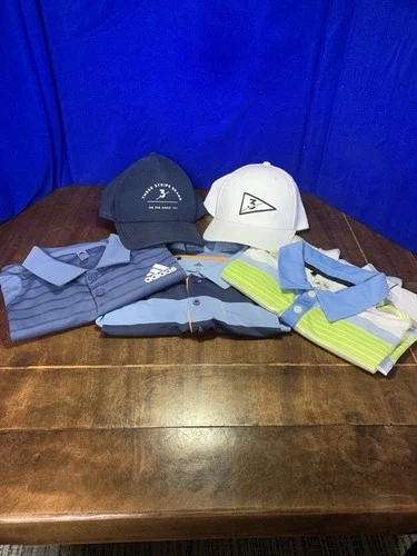Great bundle for any golfer or golf apparel collector. This lot includes 5 total items: 3 Adidas Golf Polo Shirts (Men's Medium) and 2 Three Stripe Brand Golf Hats (Adjustable, One Size Fits Most). These are stylish golf polos in modern colorways, perfect for golf outings, casual wear, country club attire, or for golf fans and collectors. The hats feature the Three Stripe Brand golf logo and adjustable snapback closures. All items are pre-owned and in good condition with normal wear from light use. Please review all photos carefully as they are part of the description. Feel free to message with any questions. Thank you for looking!