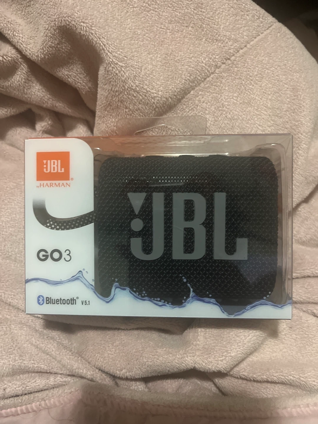 This is a JBL GO 3 portable speaker. It's waterproof and connects via Bluetooth