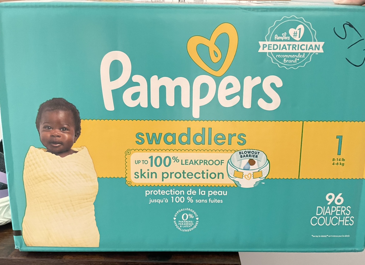 New and unopened pack of Pampers Swaddlers Size 1 diapers. Contains 48 diapers.
