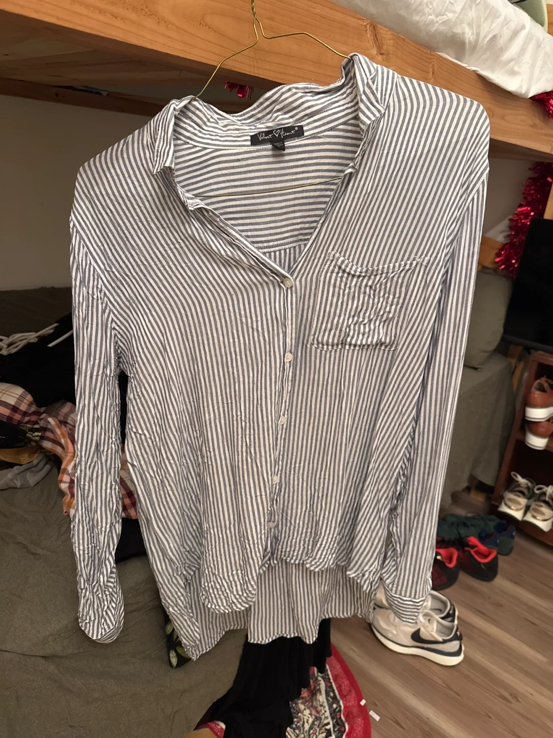 Buy & SellVelvet Heart Striped Button-Up Shirt - Size LVelvet Heart Striped Button-Up Shirt - Size L$5Velvet Heart blue and white striped button-up shirt. It's a size large. Made in Vietnam.BrandVelvet HeartWHERE TO MEETShorehavenView MapSELLERverifiedBrendaClason Point26921 reviews0 chats·0 favorites·2 viewsSEND CHAT TO SELLERHi Brenda! I’m interested in your listing.Hi Brenda! I’m interested in your listing.Get the Karrot app to chatSign In to chat