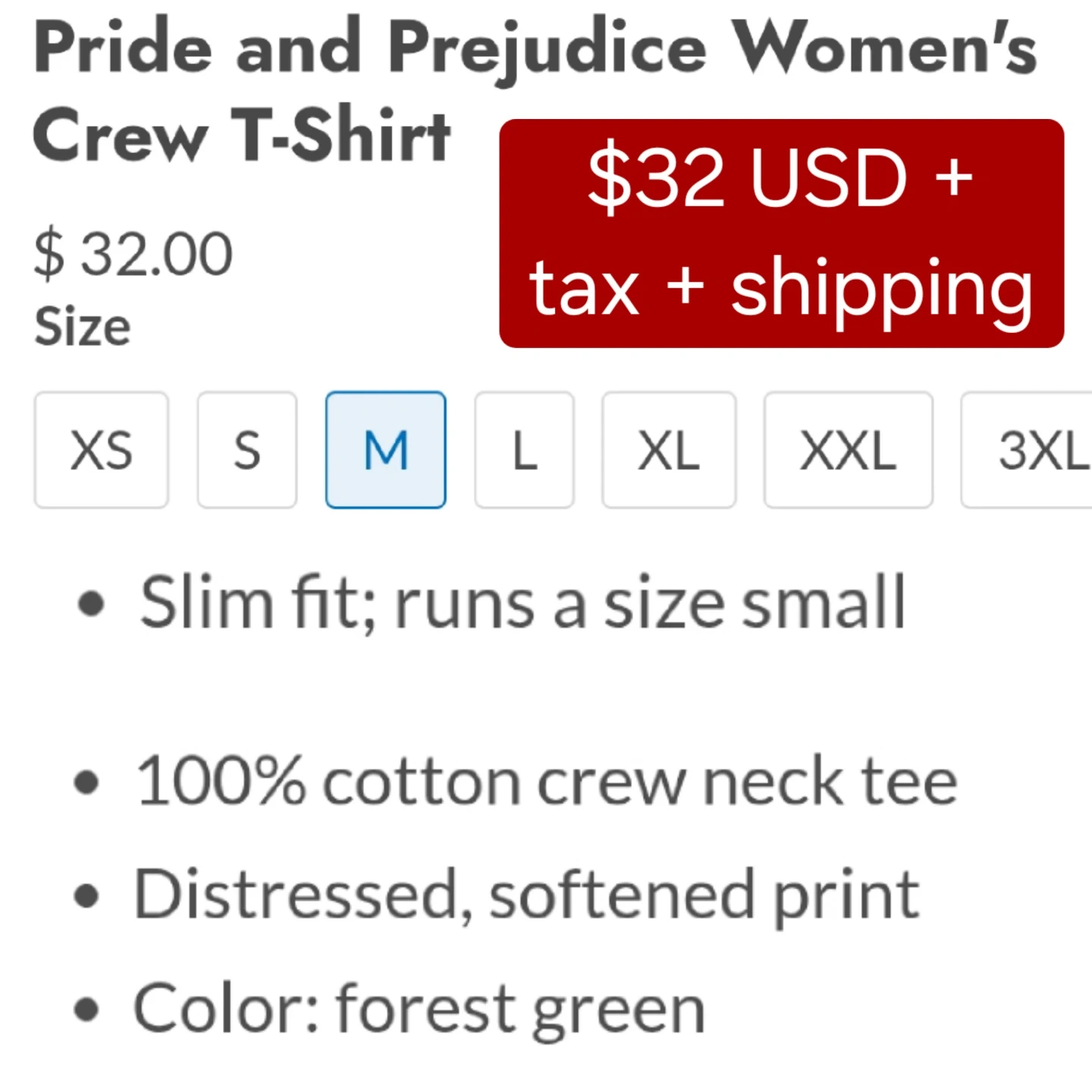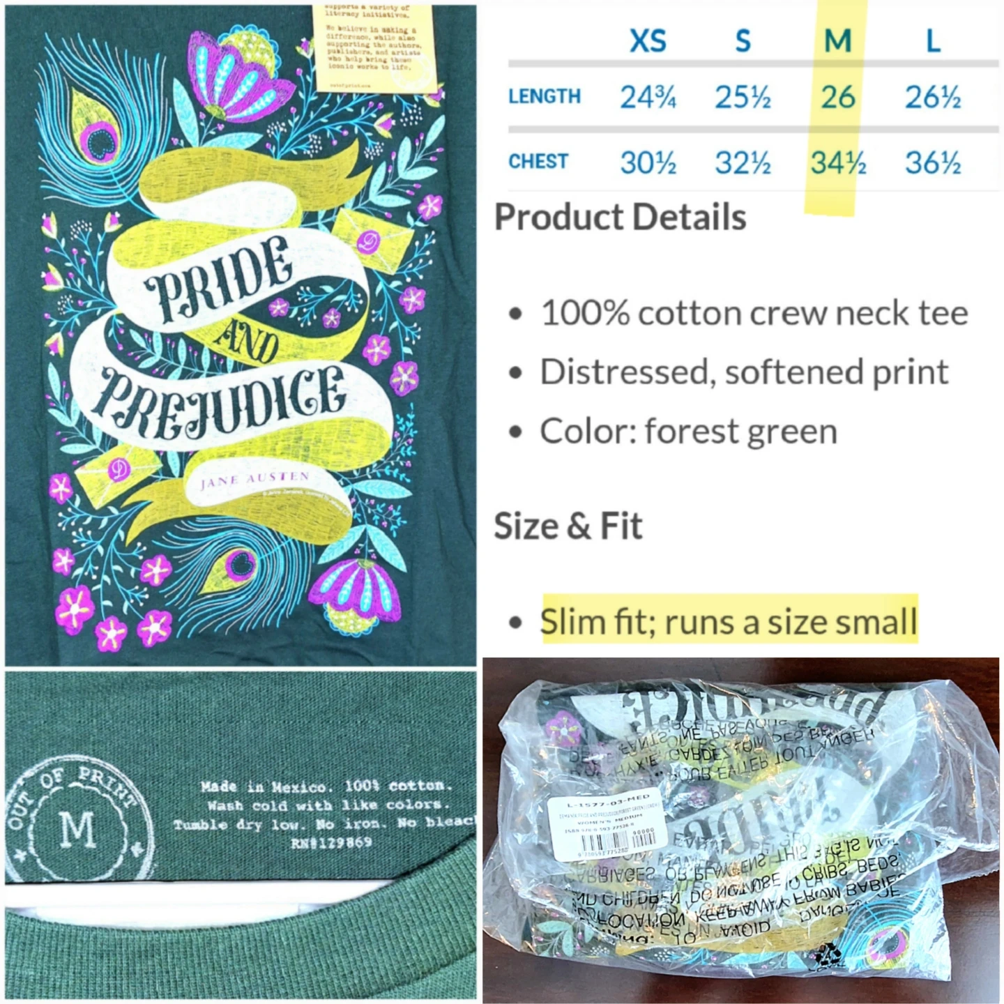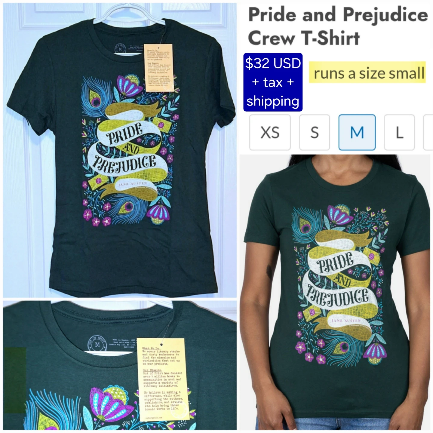 BRAND NEW wrapped with tags - Pride and Prejudice women's crewneck tee - labelled Size M, but fits like a Size S