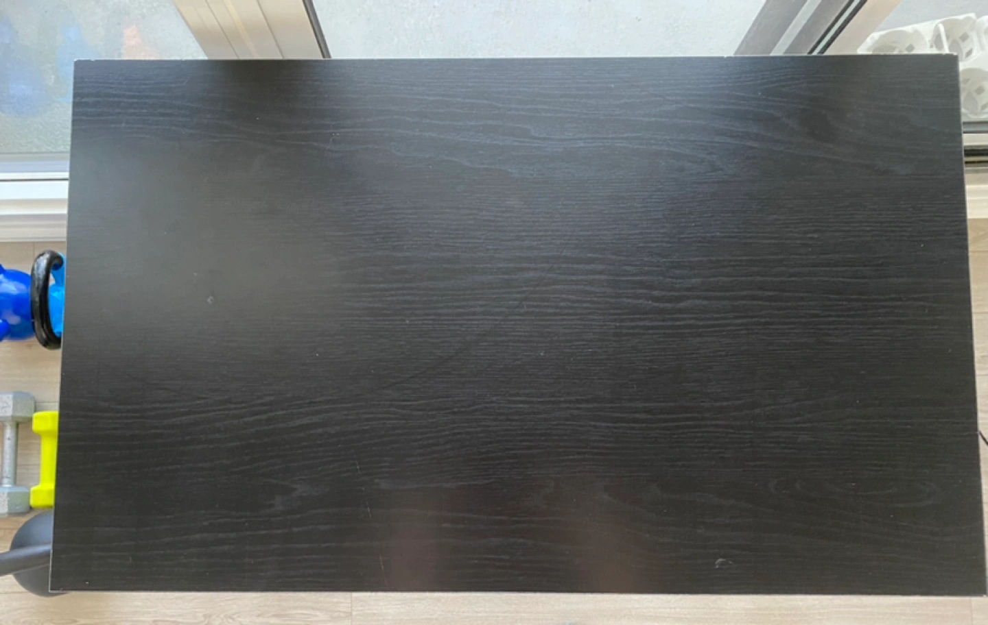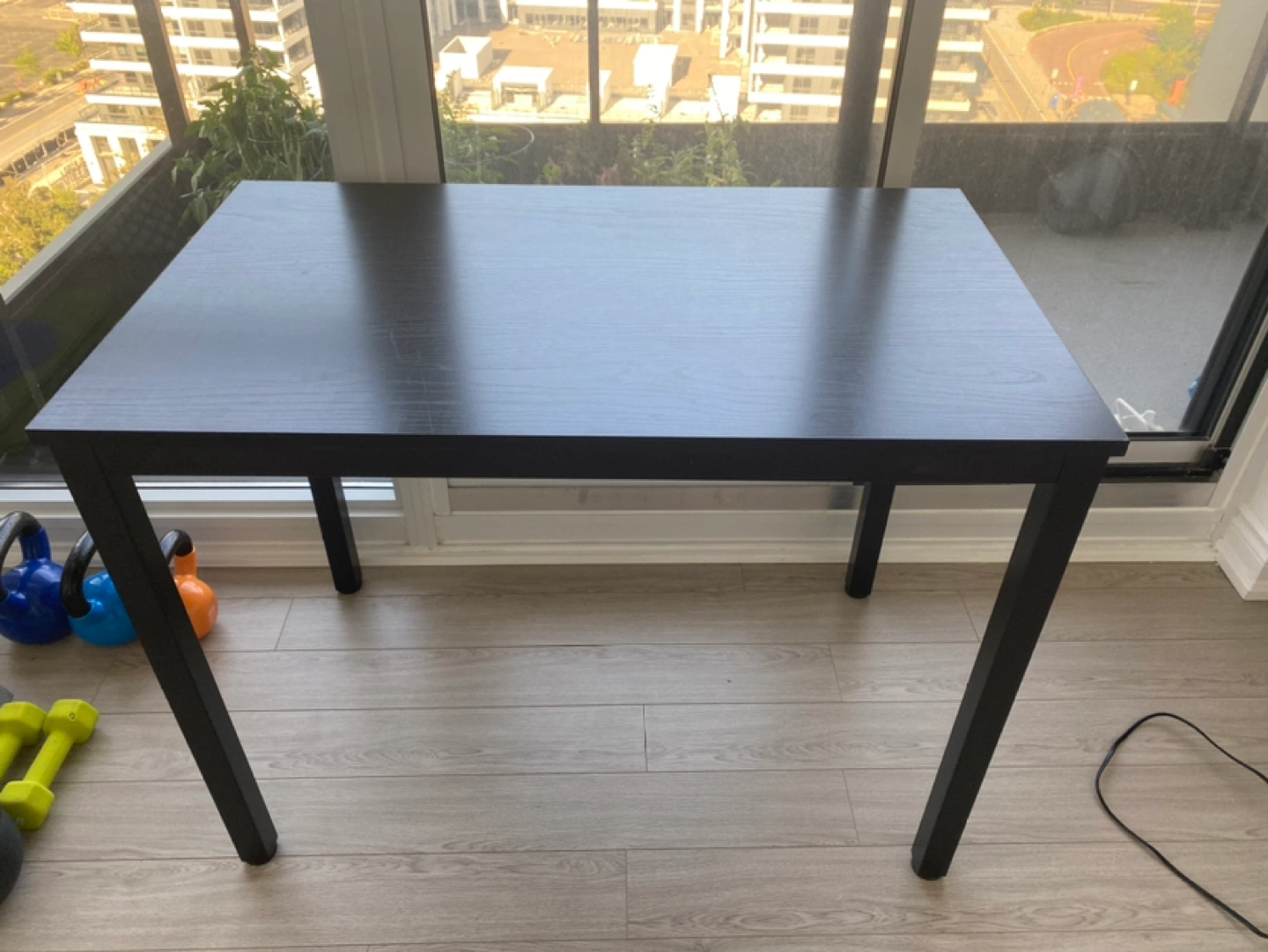 Black Desk originally from Amazon in good condition, minor scratch on table top and some wear along edges of table top.
