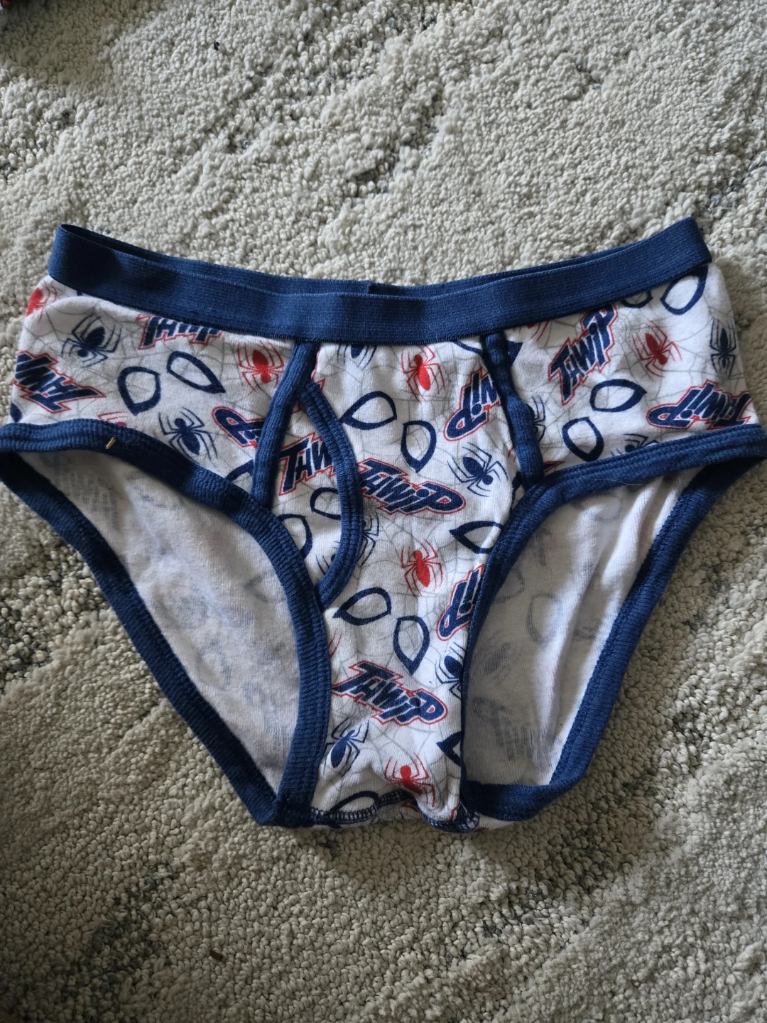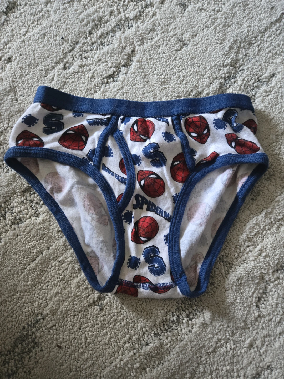 Four brand new pairs of kids Spider-Man underwear featuring Spidey designs and blue trim and cotton material for comfort.