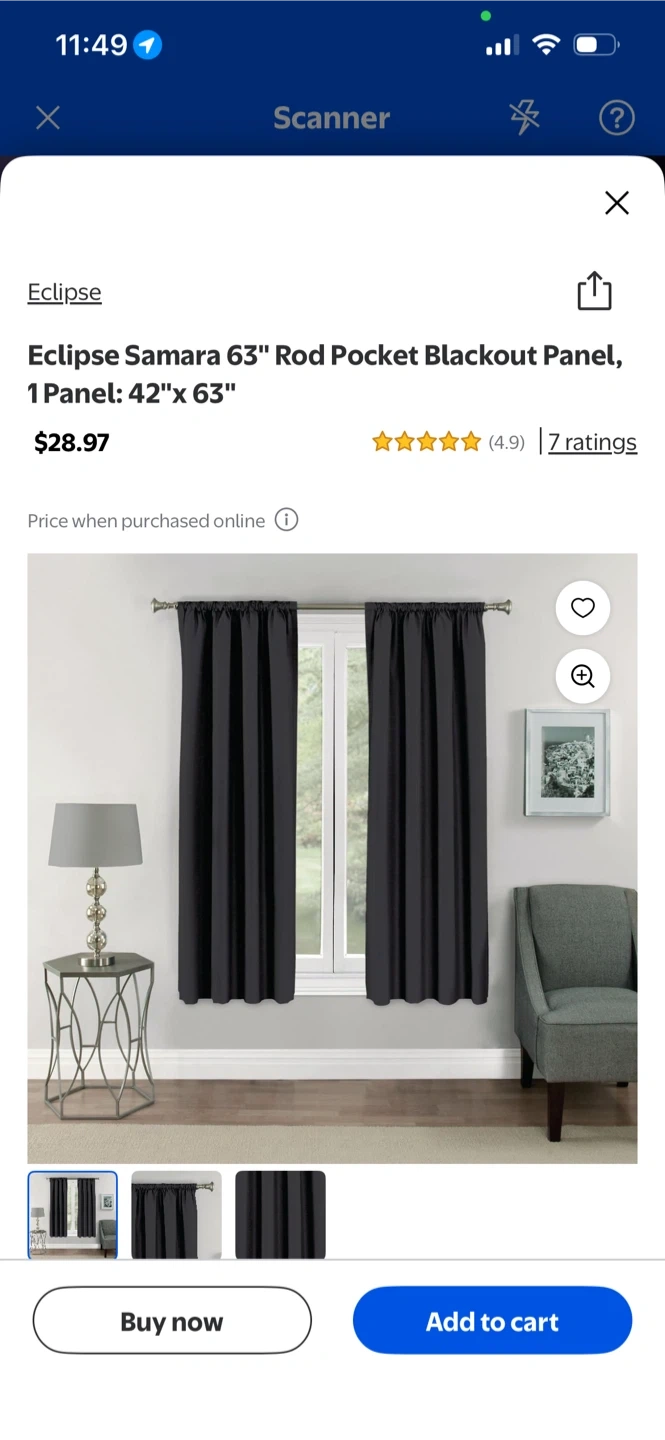 This is an Eclipse Samara blackout curtain panel. It's a rod pocket style, measuring 42 inches by 63 inches. This single panel offers excellent light-blocking.