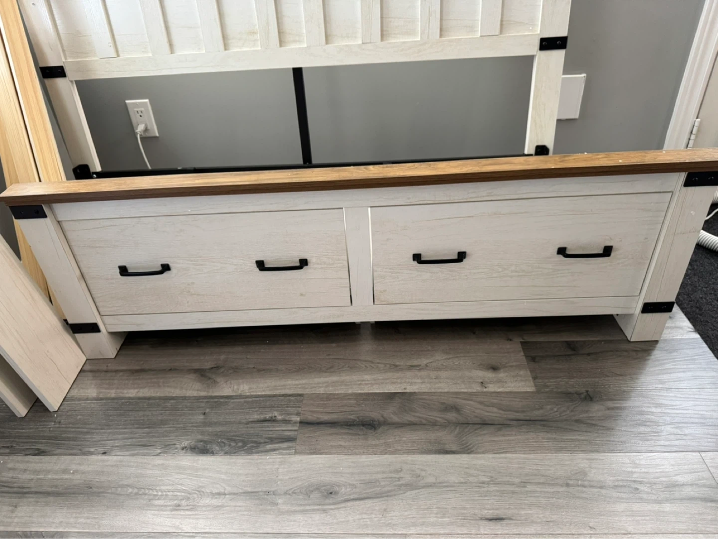 White/Brown Single Bed Frame w/Drawers