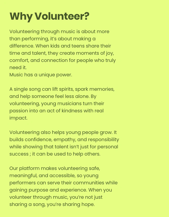 We’re currently looking for student musicians (Grade 3+) who want to volunteer in Senior living homes or care facilities interested in performing their musical talents for the elderly.