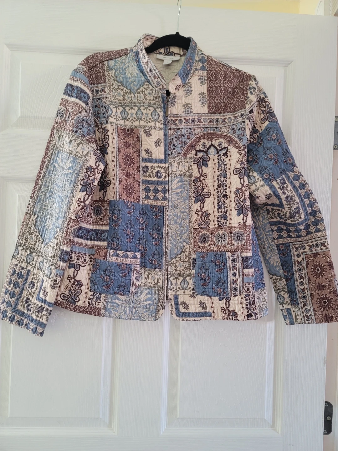 Quilted jacket from Dressbarn with a colorful patchwork design. Size L. Made in USA