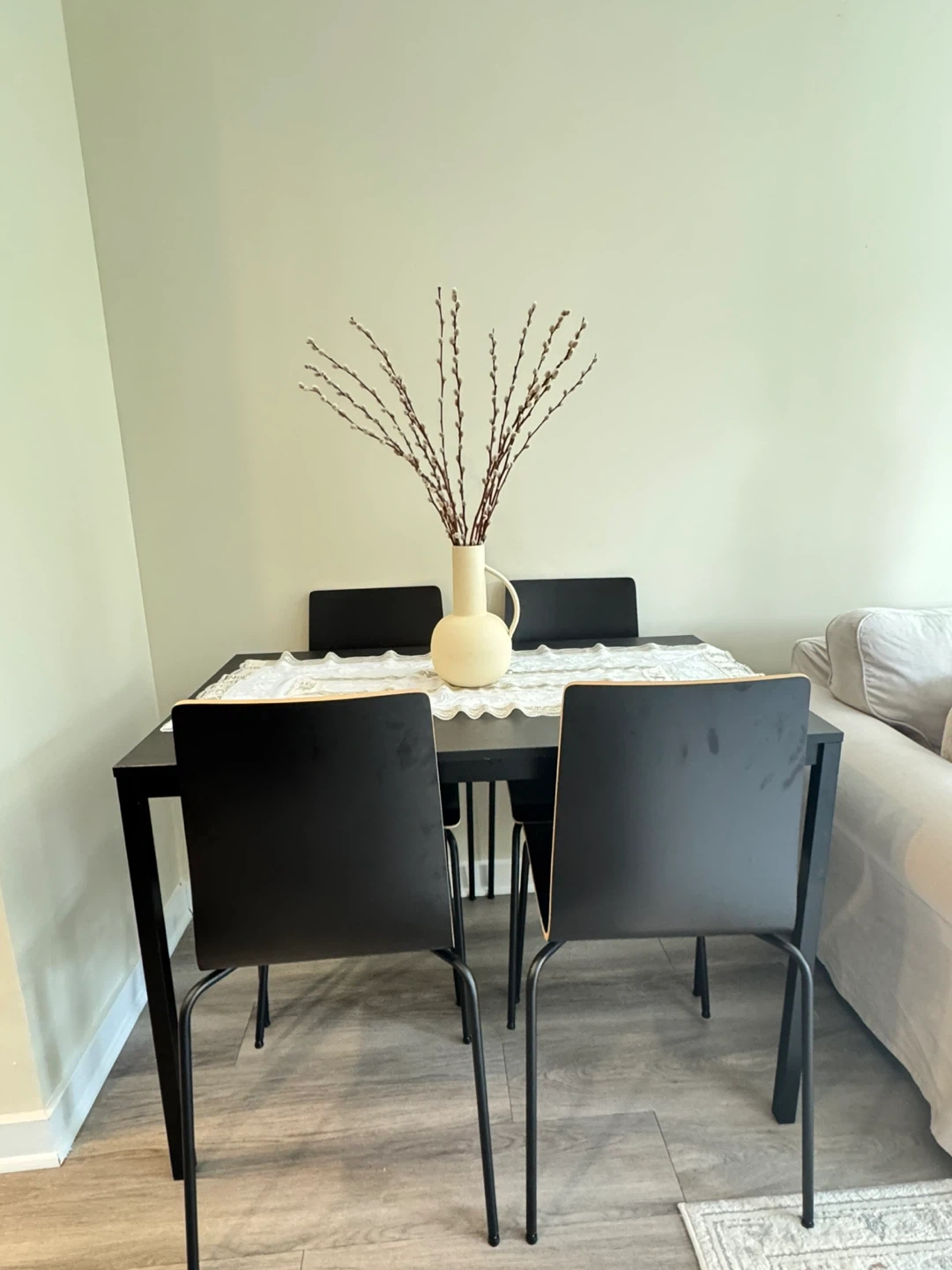 Cream ceramic pitcher vase. Includes decorative pussy willow branches. Adds a touch of rustic charm to any table setting. Perfect for entryway consoles or dining tables.