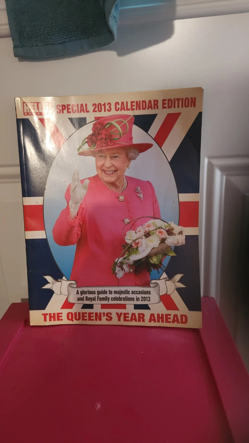 This is a special 2013 calendar edition titled 'The Queen's Year Ahead'. It's a guide to majestic occasions and Royal Family celebrations in 2013. The calendar features a different image for each month, showcasing Queen Elizabeth II and other Royal Family members. It's a great way to keep track of the year while celebrating the monarchy!