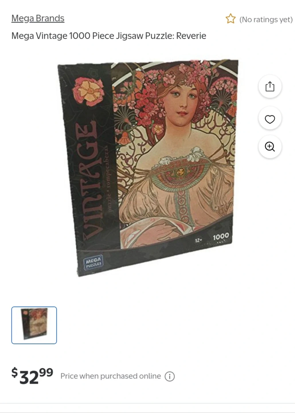 1000 piece jigsaw puzzle called Reverie. It's in excellent condition. Opened package but never used and ready for a new home! $7 The original price was $32.99.