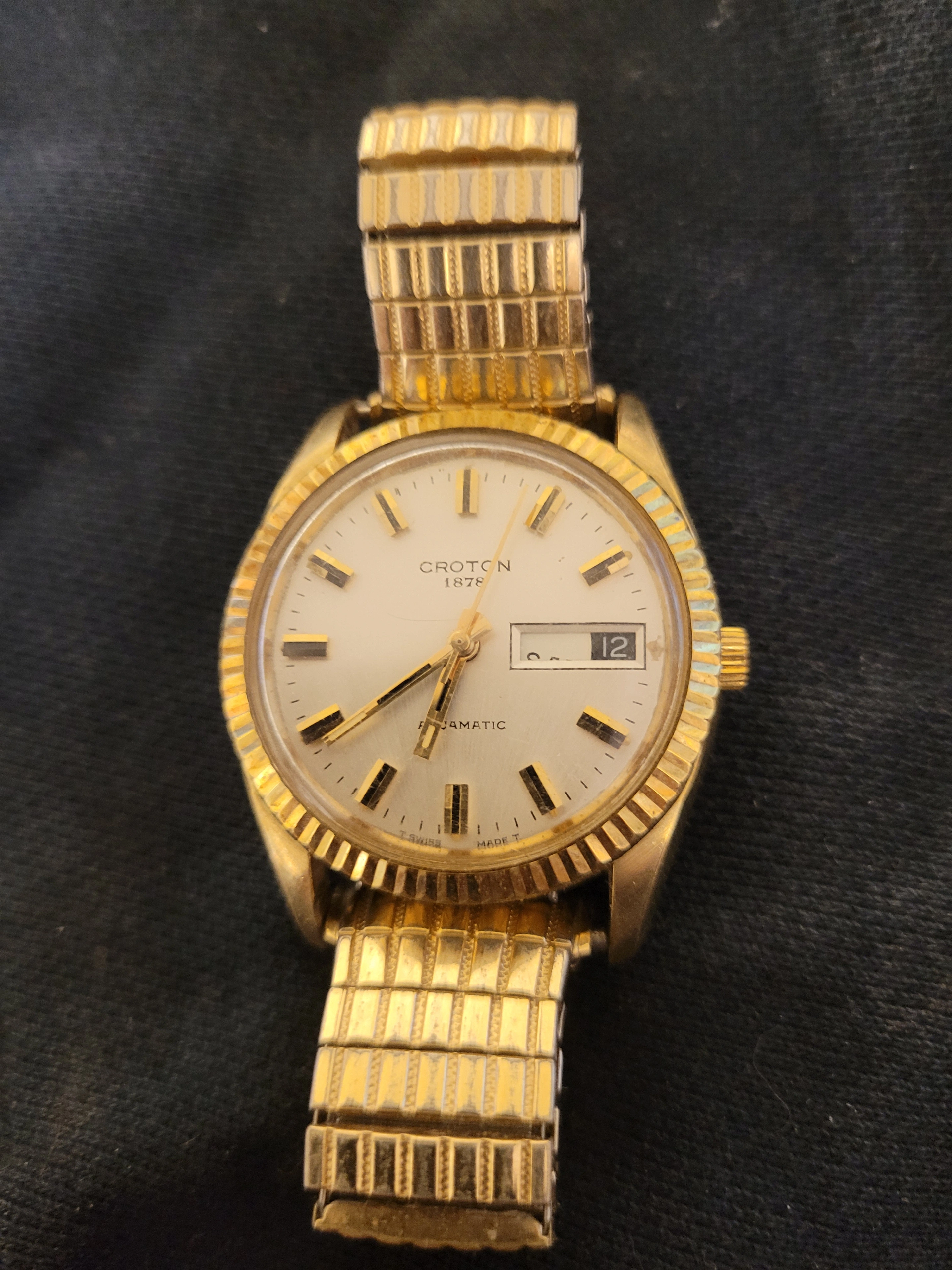 1960'S CROTON, AQAMATIC 1878, AUTO WIND, 18K PLATED TOP, STEEL BACK, SWISS MADE, WATER/SHOCK RESISTANT...$200