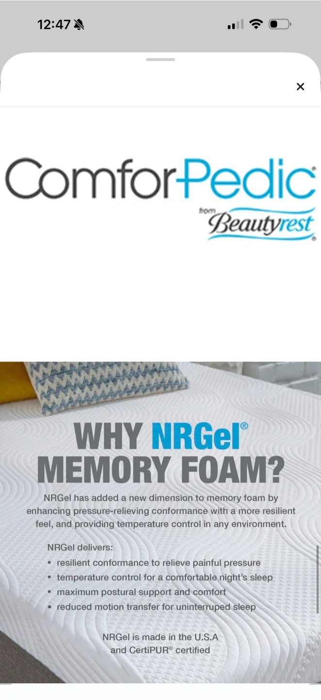 Comforpedic From Beautyrest firm NRGel Memory Foam Mattress