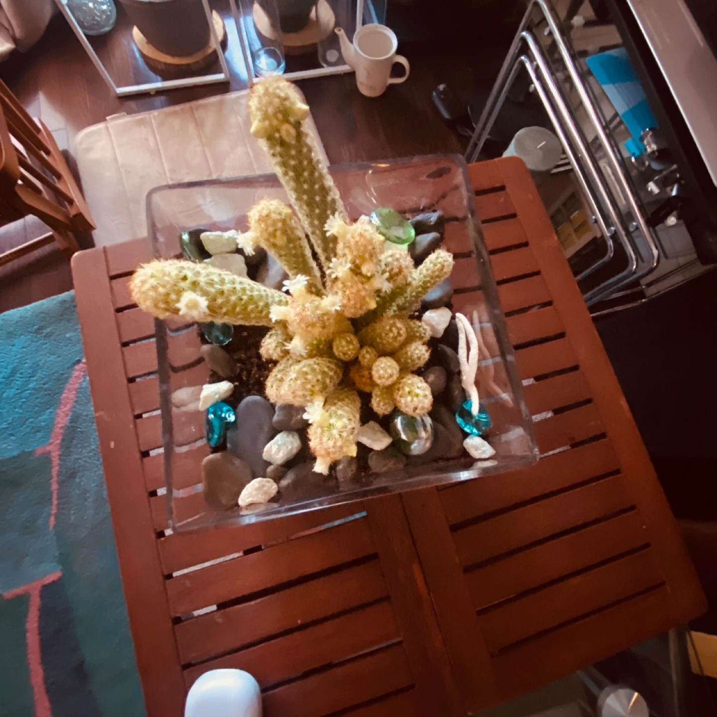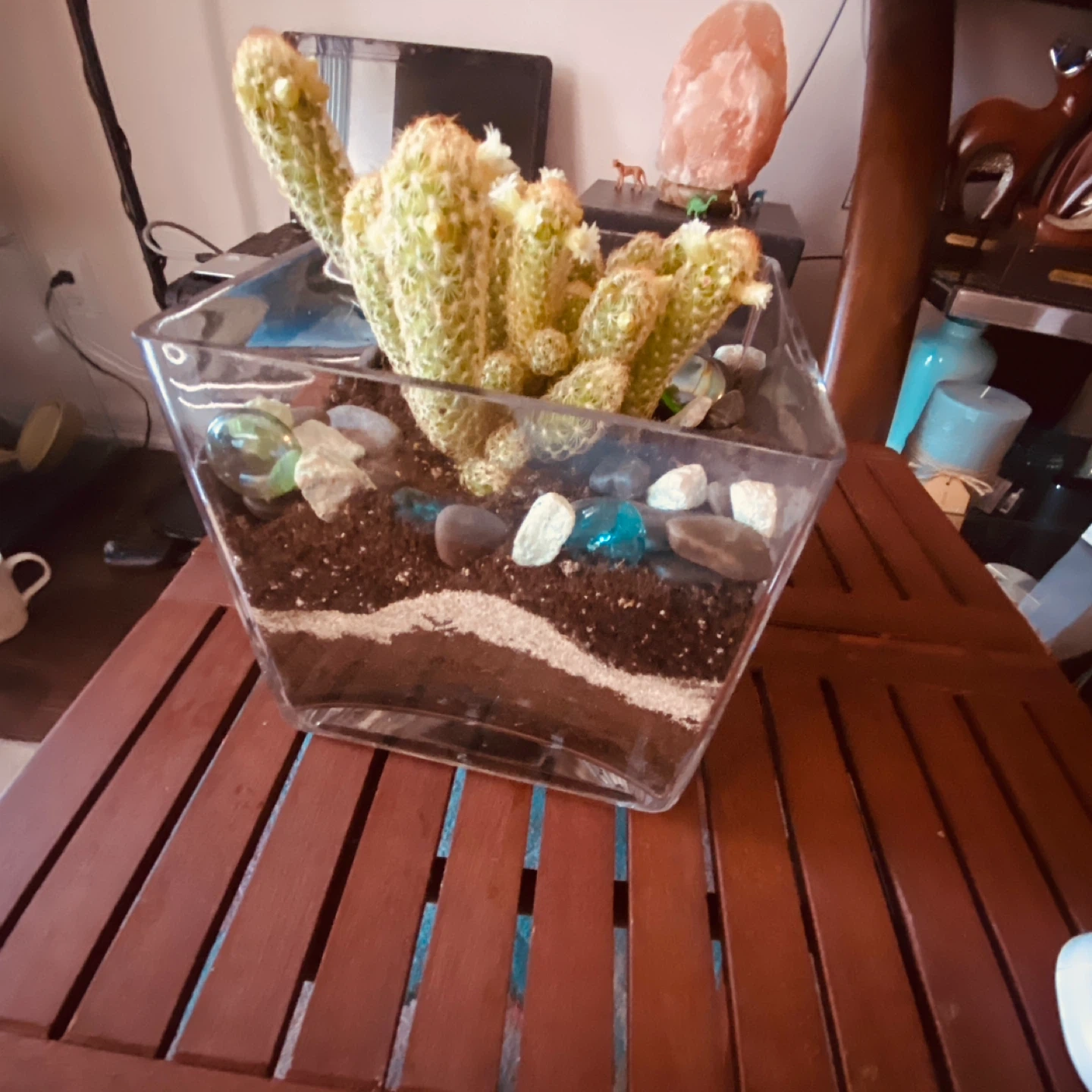 Cactus plant in a glass planter
