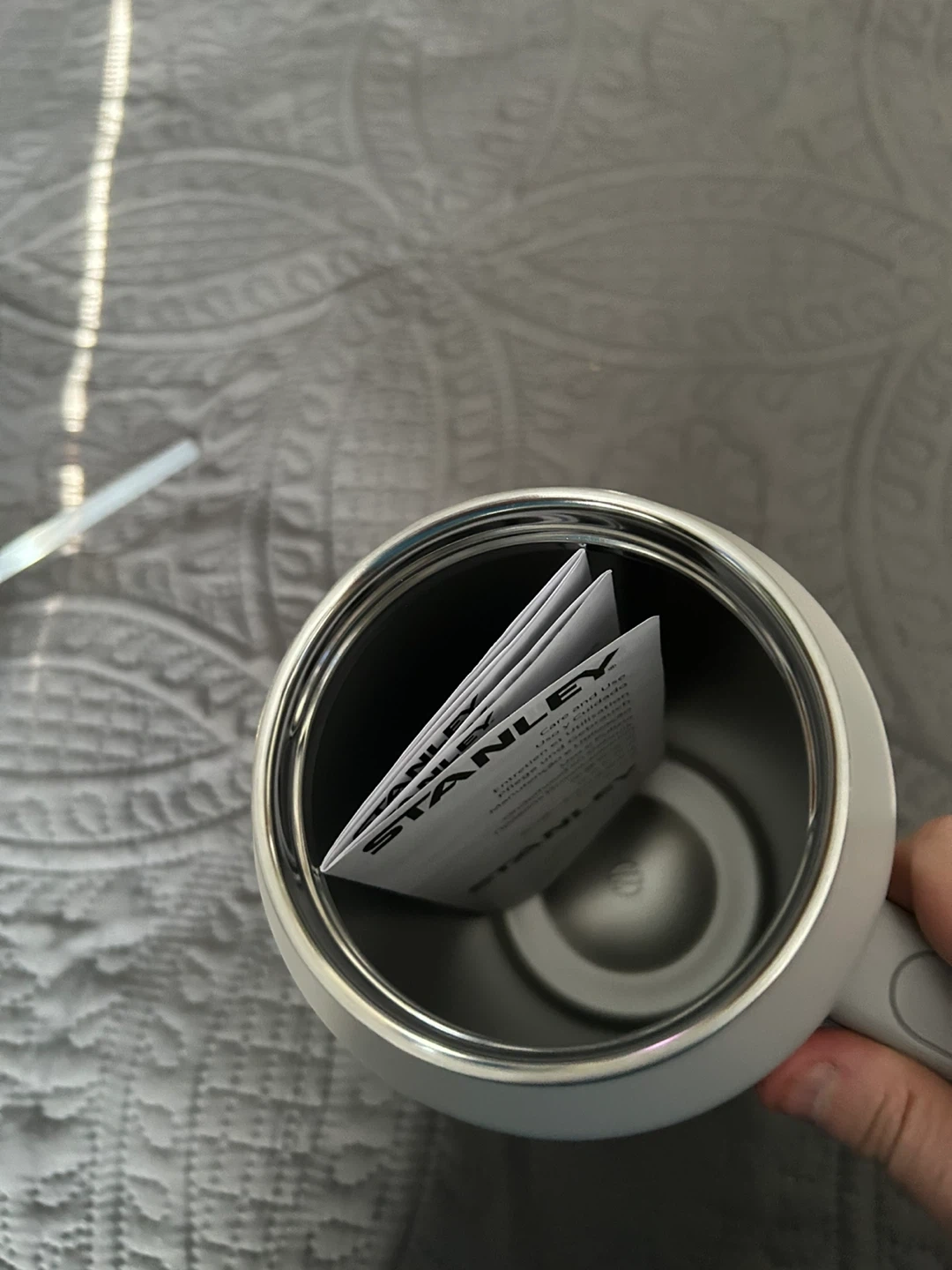 Mint condition, never used—still has original tags, reusable straw, and instructions booklet inside! Matte Ash Grey finish, huge 64 oz capacity (1.9L), FlowState 3-position lid (straw/open/closed—no spills), double-wall vacuum insulation for epic temp retention, comfy handle.