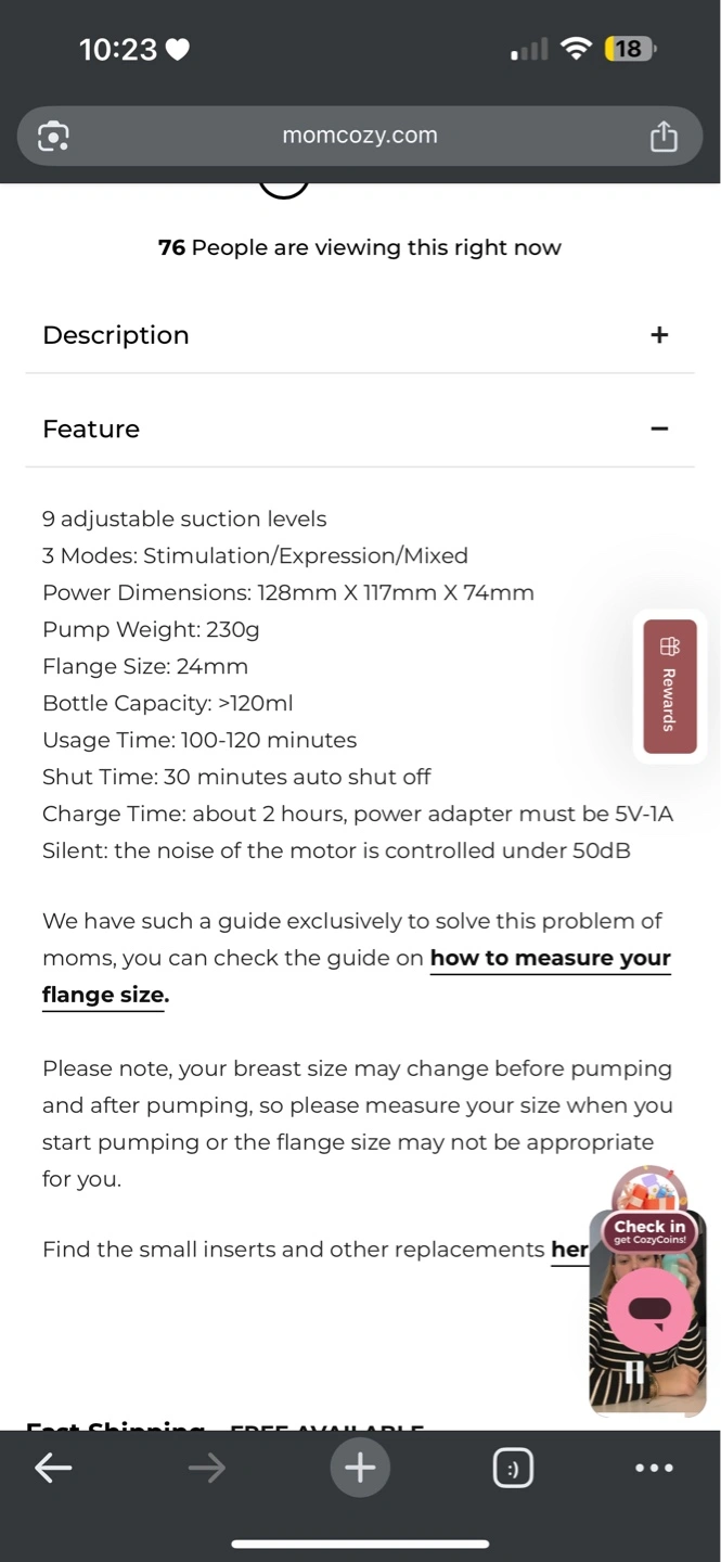 Double electric breast pump. Includes carrying case, extra flanges, and user manual. USB rechargeable.