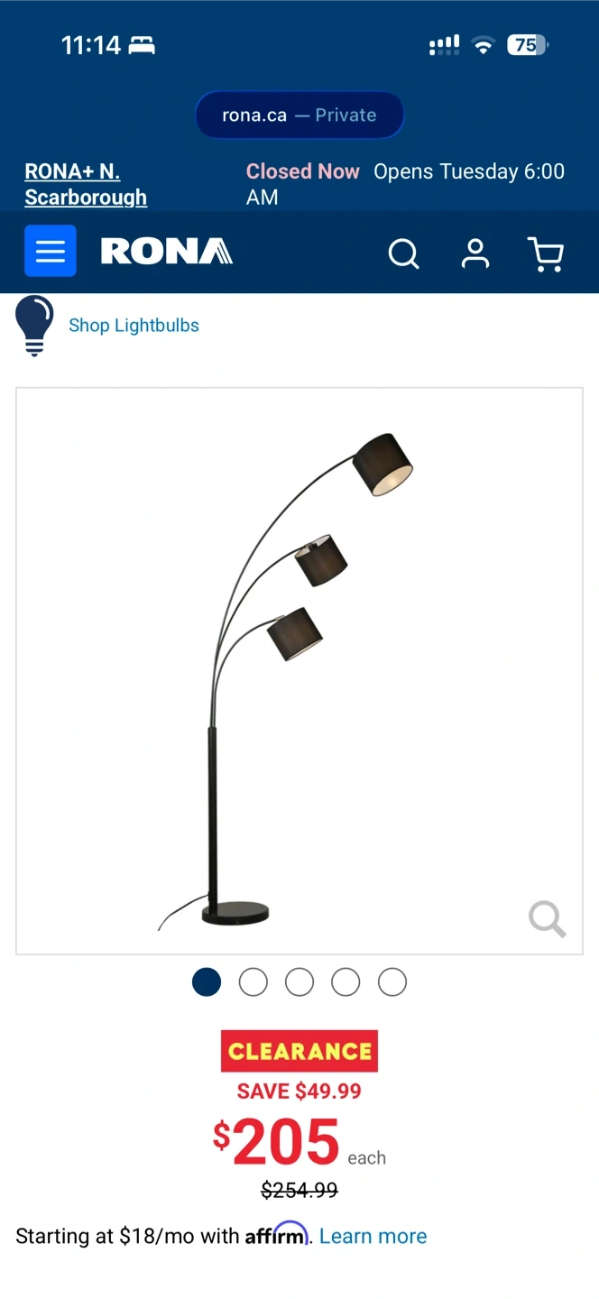 Three 60 watt A19 bulbs required (not included)