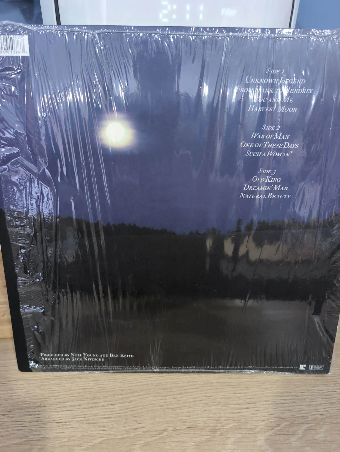 This is a almost new, vinyl record of Neil Young's "Unknown Legend." It features tracks like "Unknown Legend," "Harvest Moon," and "One of These Days." This record was produced by Neil Young and Ben Keith. It's a great addition for any vinyl collector!