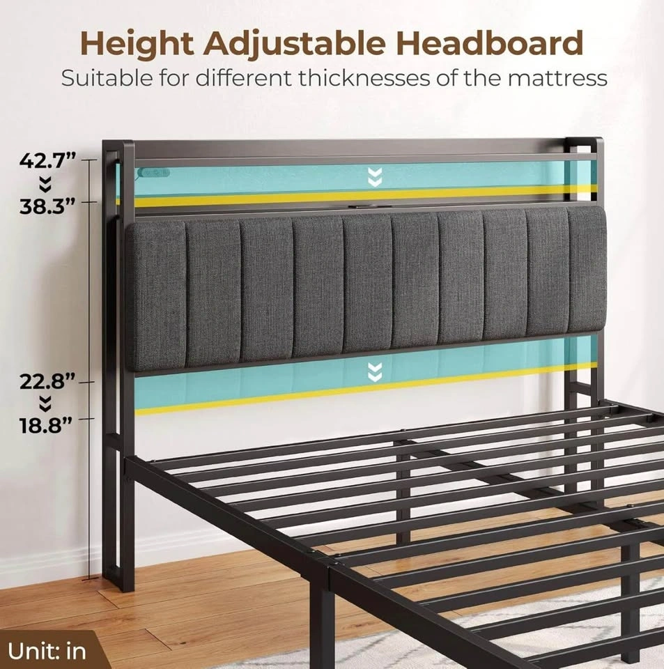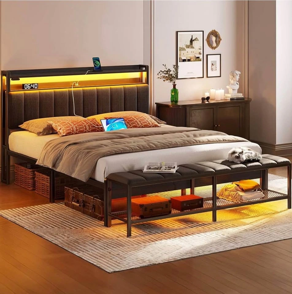 • Built-in Tech: RGB LED lights on the headboard and footboard (12 modes) with a convenient controller, plus a built-in headboard charging station (2 USB, 1 Type-C).