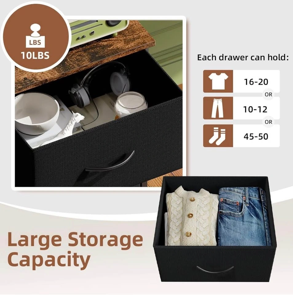 • Quality Construction: Sturdy steel frame, durable wood top, and premium fabric drawers.