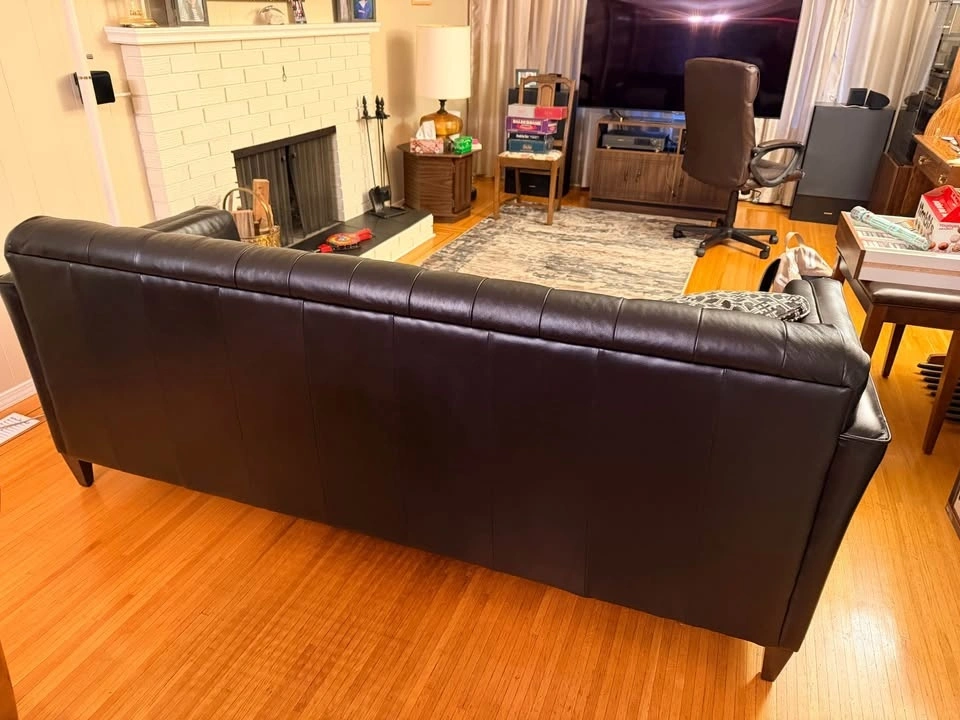 Excellent Lazyboy leather couch. This 3 seater sofa was $3500 when new. It is 7 foot width, 35 inch depth, and 34 inch height. Rarely used, original invoice from purchase is available. Lynn Vallley North Vancouver for pick up.
