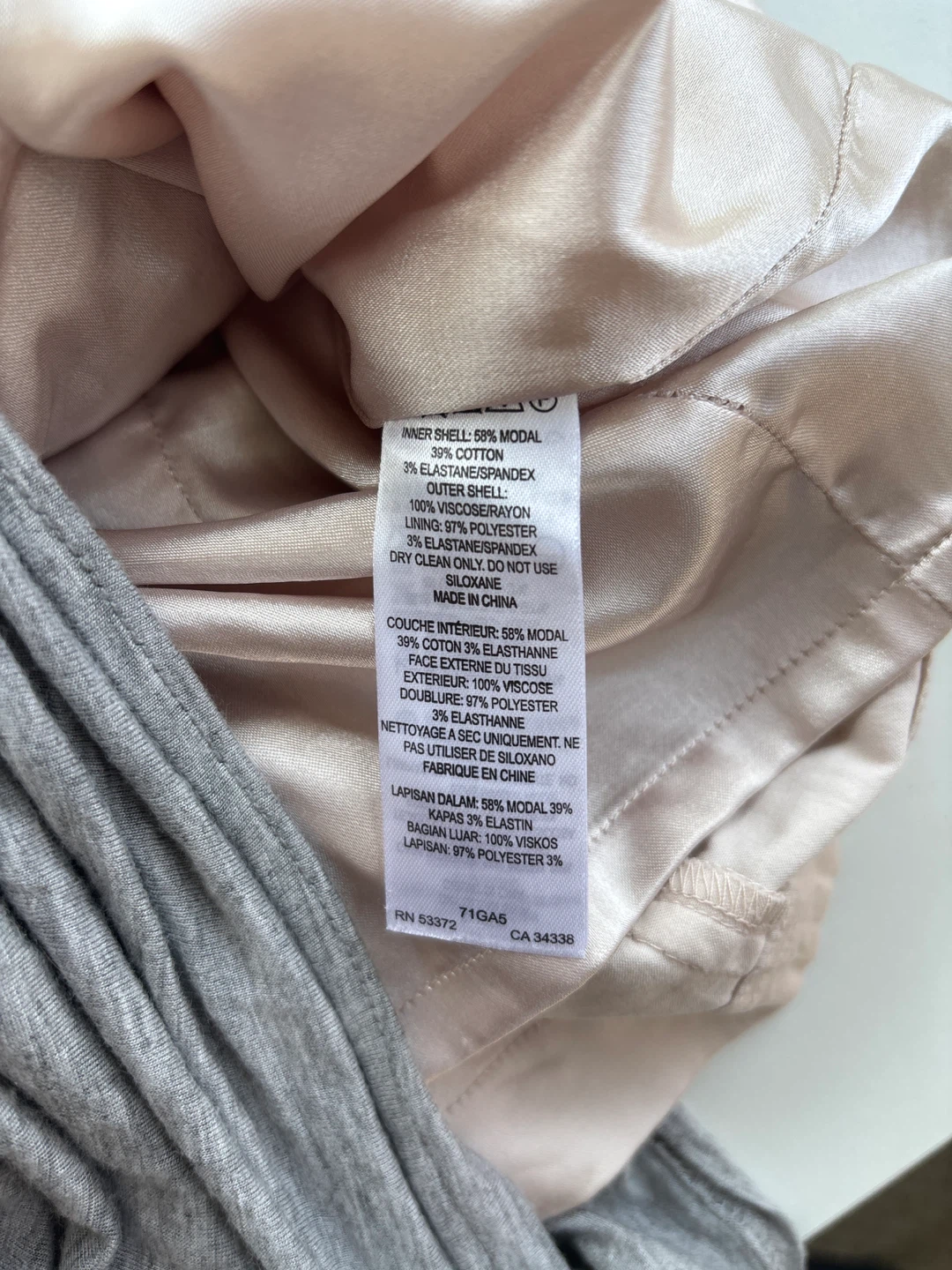 French Connection dress in size 4! The inner shell is 58% modal and 39% cotton with 3% elastane/spandex. The outer shell is 100% viscose/rayon and the lining is 97% polyester with 3% elastane/spandex