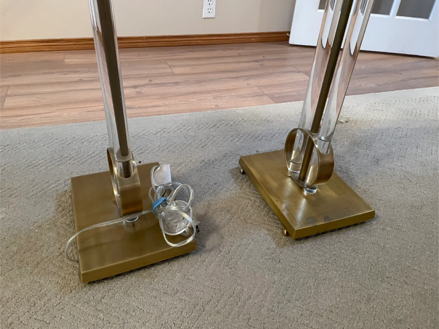 Pair of Acrylic and Brass Floor Lamps