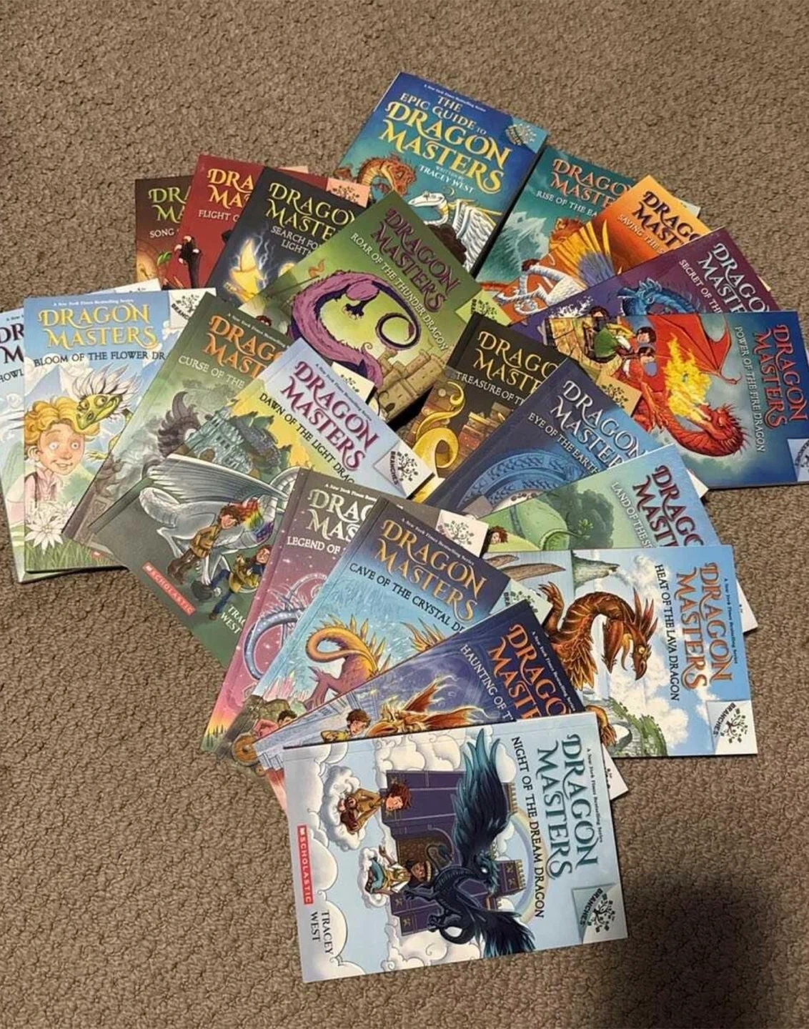 Book numbers: 1-8, 12-14, 18, 20-21, 23-28, Epic Guide to Dragon masters.