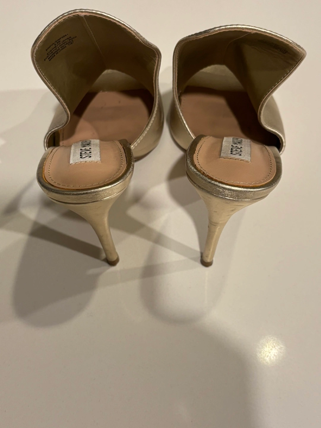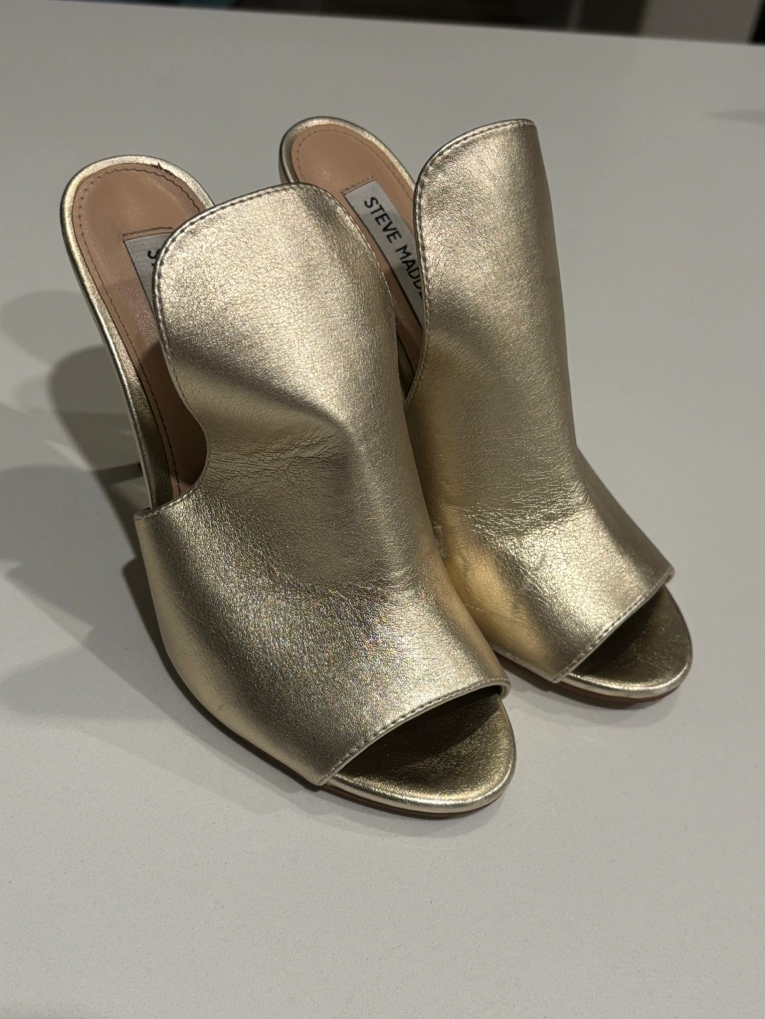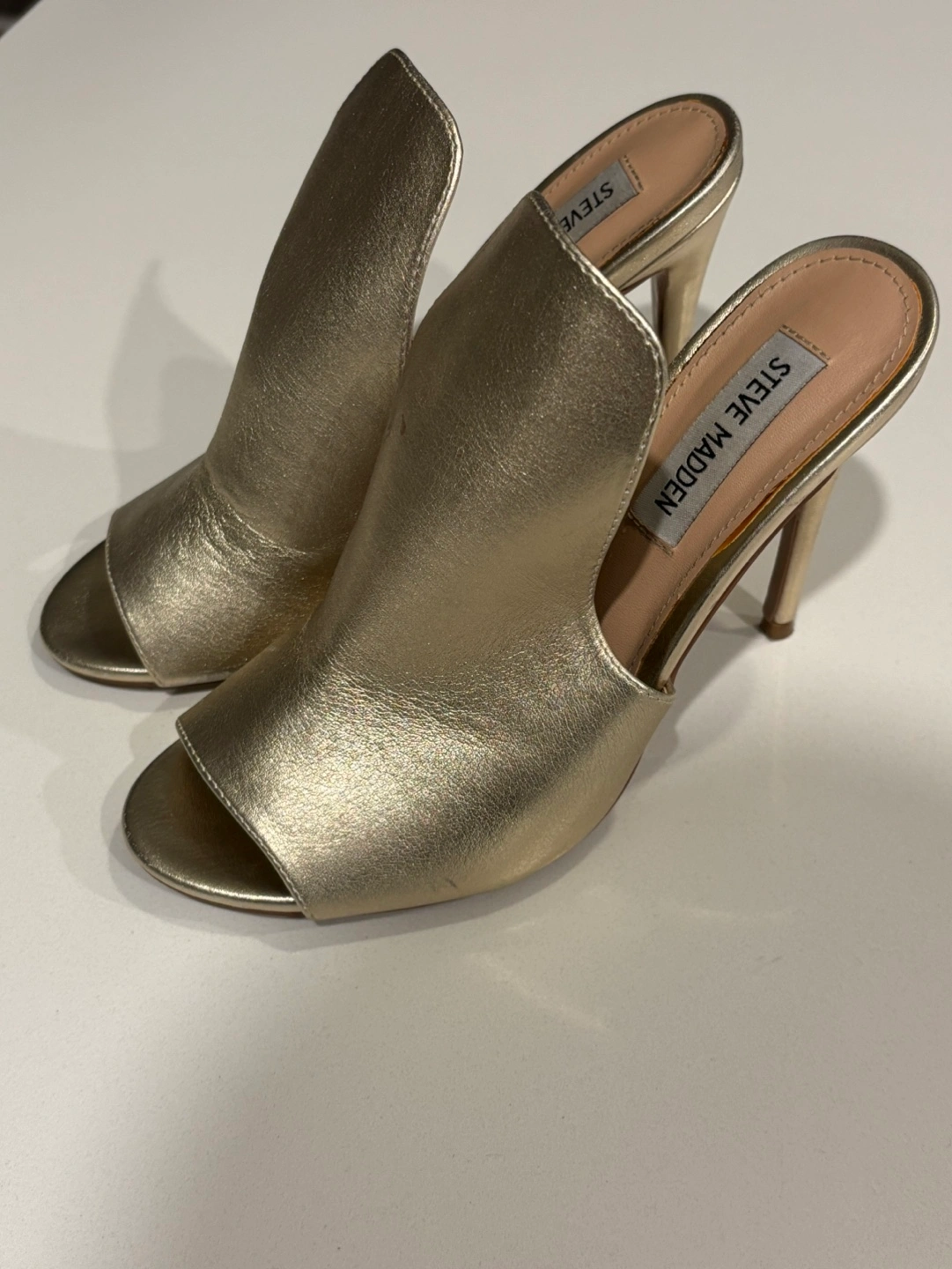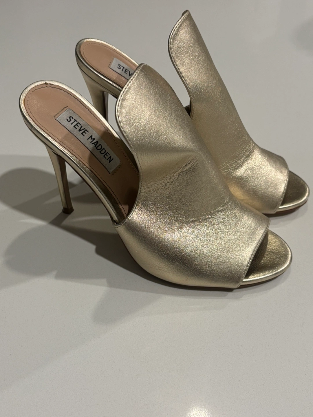 Steve Madden Gold High Heeled Shoes For Sale. Excellent - like new condition. Worn once. One side of shoe has a small scuff mark. Purchased at the Steve Madden Store in Las Vegas. Paid $220. East Regina pick up. Listed on other sites.