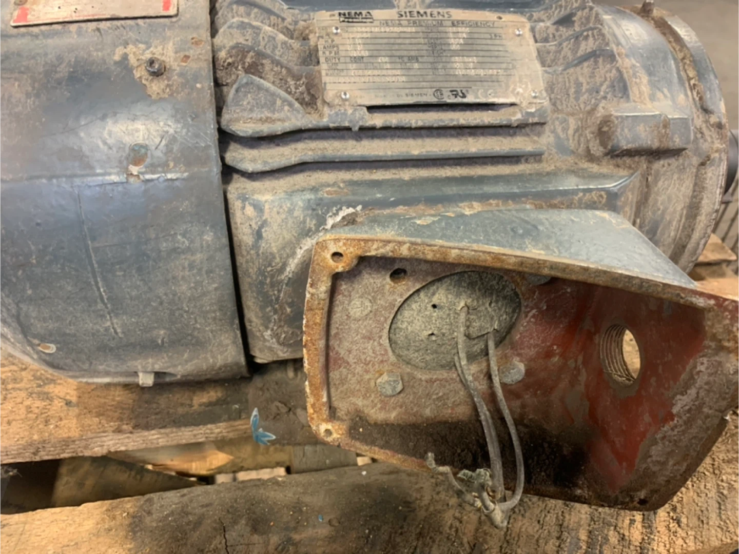 Selling a Siemens NEMA Premium Efficiency electric motor. The motor has a horsepower of 7.5, 1765 RPM, and operates at 575 volts with 7.7 amps. It's a 3-phase motor with a frame size of 213TC. The motor's design is B and it has a continuous duty rating. It was made in Mexico by Siemens.