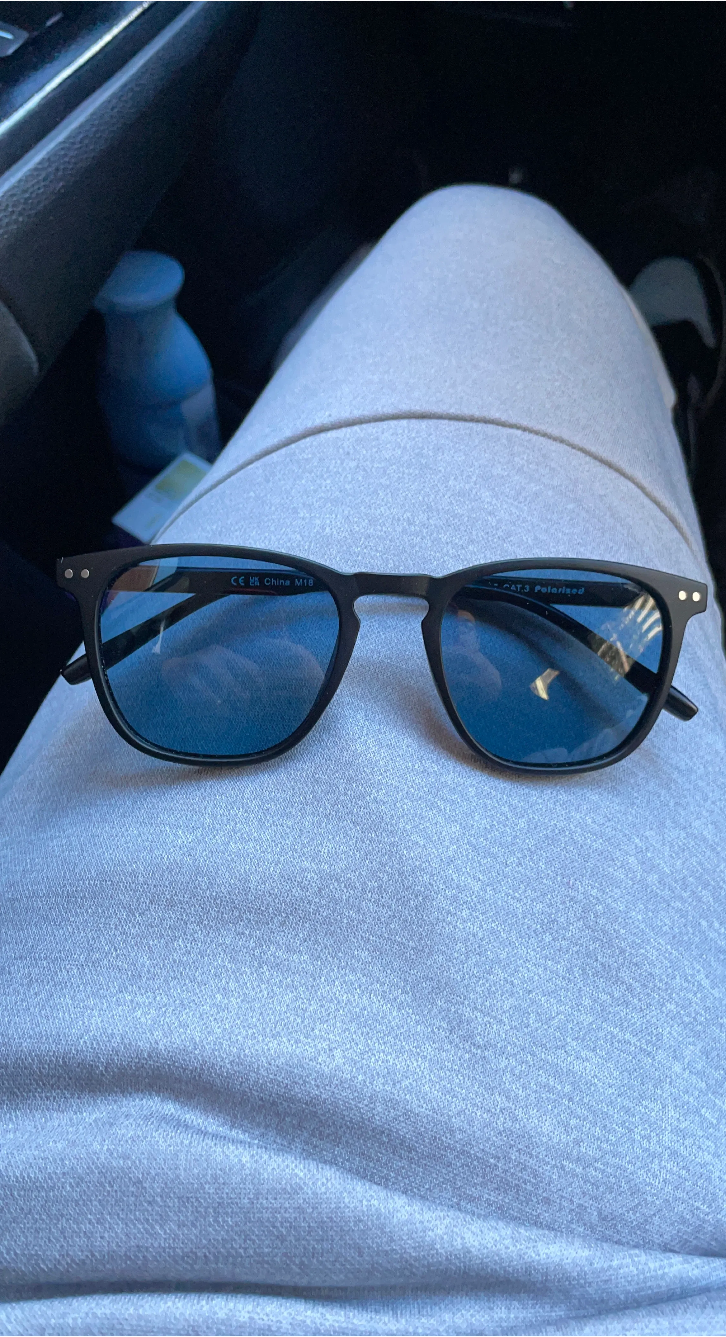 These black sunglasses feature polarized CAT 3 lenses. They're made in China and are perfect for sunny days! Keep your eyes protected with these stylish shades.