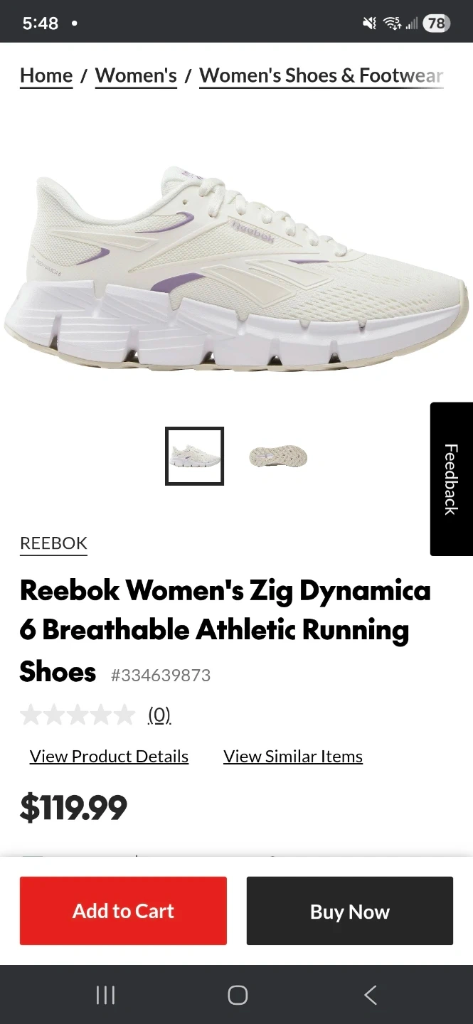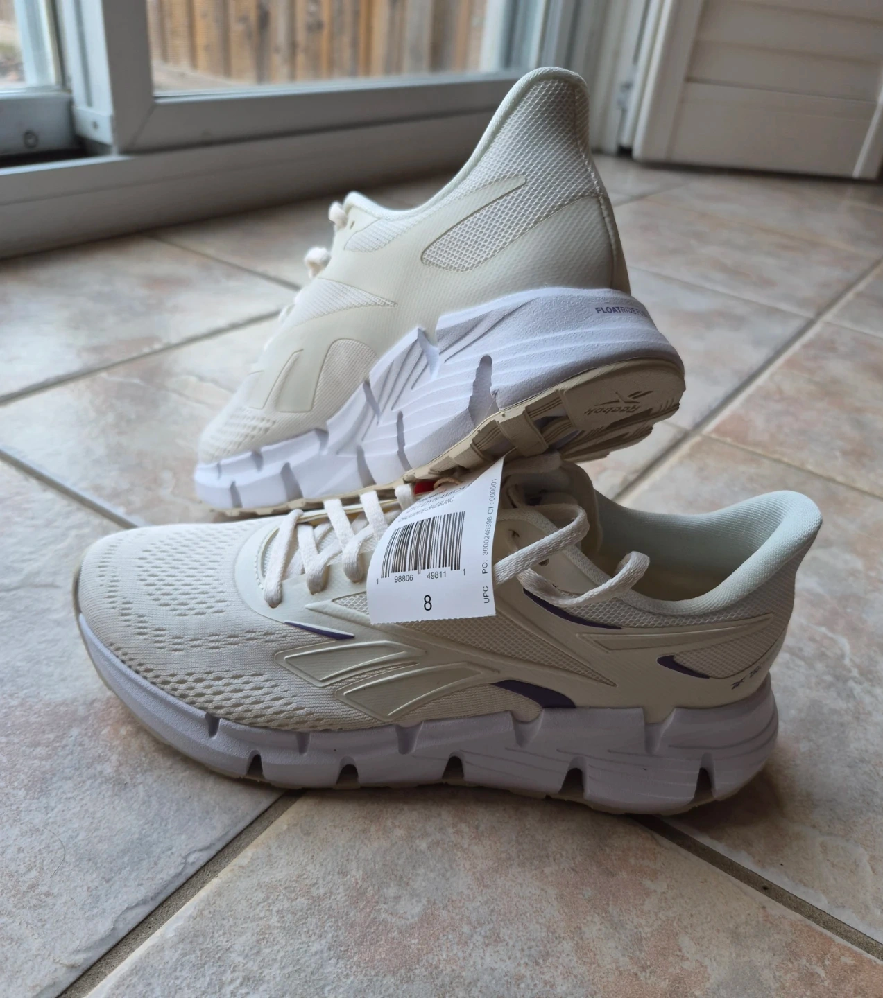 Reebok Women's Zig Dynamica 6 running shoes in cream. SIZE 8, Features a breathable mesh upper and comfortable footbed. Includes original box.
